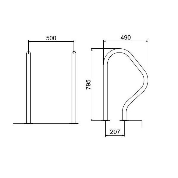 Medence korlát, AISI316L, 795 x 490 mm, ezüst, rozsdamentes acél, polírozott, karimás rögzítés, 1 pár