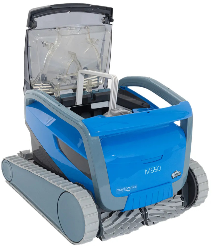 A Dolphin M550 fejlett Dual Drive motor technológiája precíz navigációt és kiváló manőverezhetőséget biztosít, így minden felületet alaposan megtisztít. Az okostelefonos vezérlés lehetővé teszi a távoli irányítást, míg a többrétegű szűrőrendszer még a legapróbb szennyeződéseket is hatékonyan kiszűri. A kábelcsavarodást gátló rendszer gondoskodik a zavartalan működésről, a caddy pedig kényelmes tárolást és szállítást biztosít.