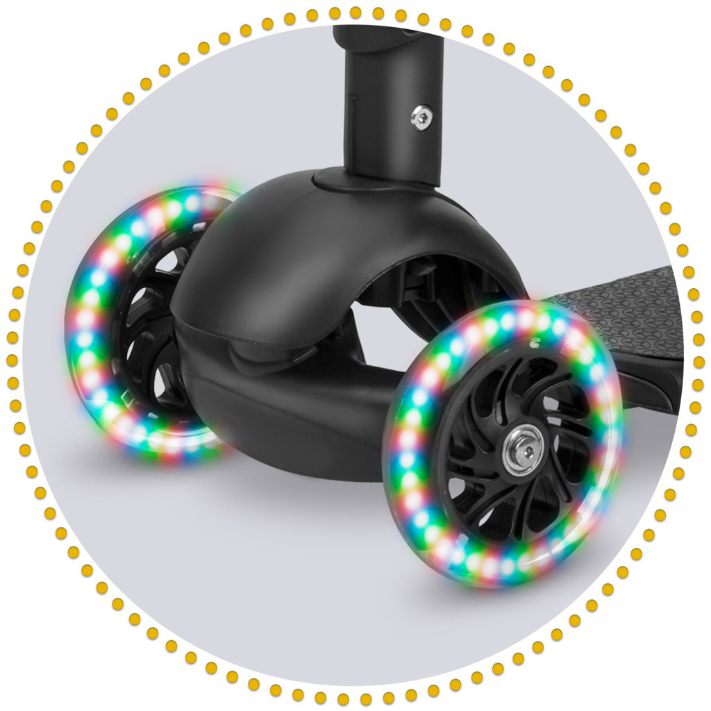 • Beépített LED kerekek: menet közben világítanak, elem nélkül