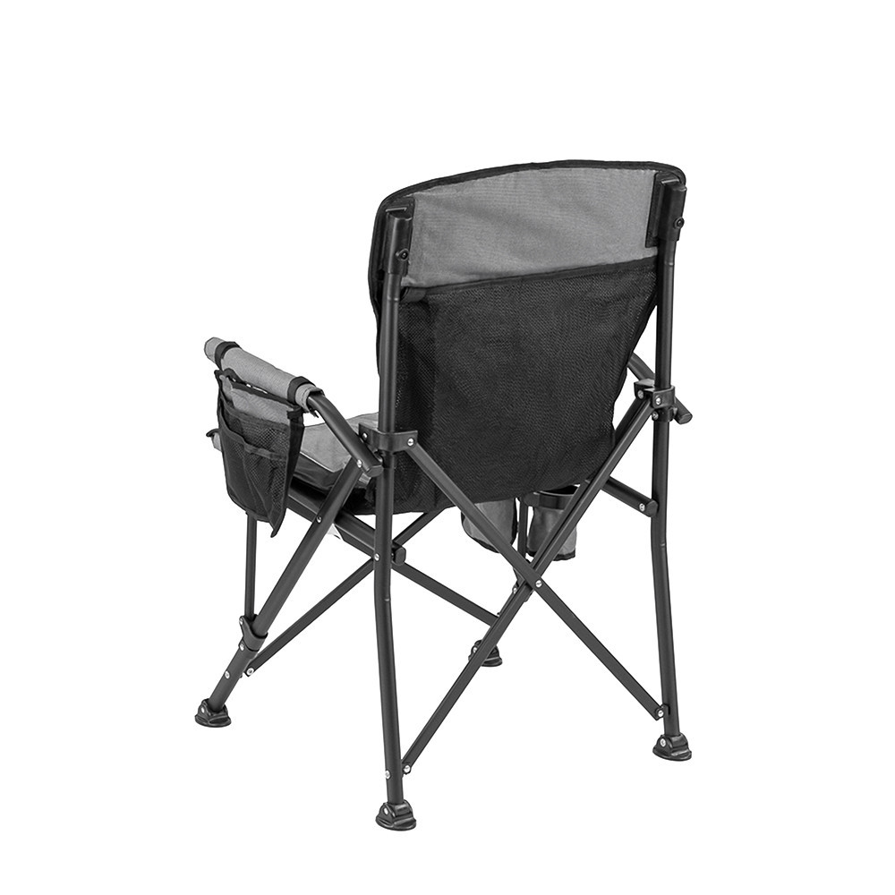 Praktikus kiegészítők – a karfába épített pohártartóban biztonságban van az italod, az oldalzsebben elfér a telefon, a dobozos csali vagy egy kis zseblámpa.