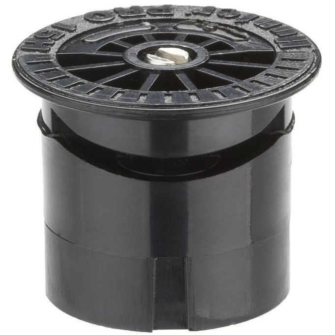 A Hunter PRO-15H típusú fekete spray fúvóka 3,4-4,6 méter között, 180°-ban képes öntözni.