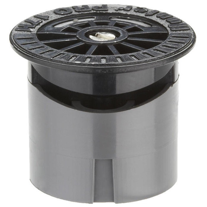 A Hunter PRO-17H típusú fekete spray fúvóka 3,9-5,2 méter között, 180°-ban képes öntözni.