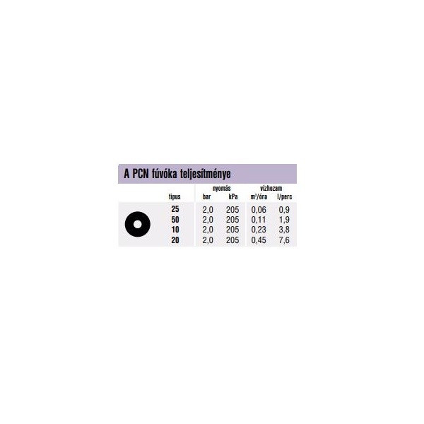 - kijuttatott vízmennyiség (2 bár nyomás esetén): 0,23 m3/óra