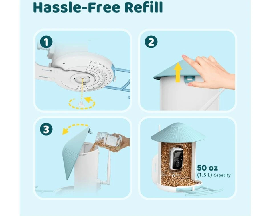 - Takarmánytartály kapacitása: 1,5 liter (50 oz)