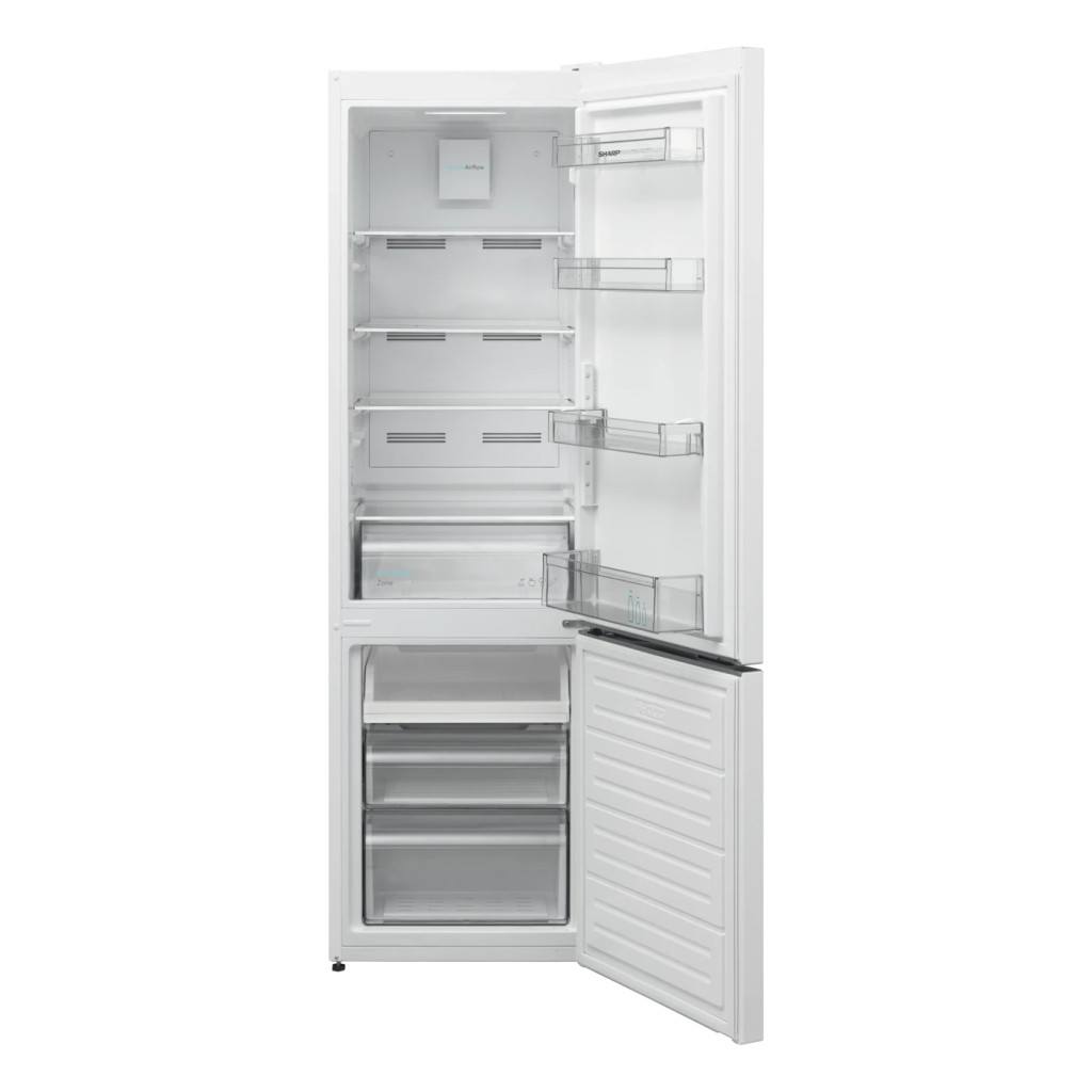 A SHARP SJ-NBA05DHXWD-EU egy 180 cm magas, szabadon álló hűtő-fagyasztó kombináció, amelyet elsősorban keskeny, helytakarékos konyhákba terveztek (szélessége 54 cm). Modern, praktikus funkciókat kínál, amelyek kényelmes és hatékony mindennapi használatot biztosítanak.