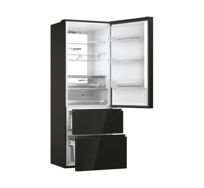 A Haier 70 cm széles háromajtós, alulfagyasztós hűtőszekrényei egyedülálló fiókos rendszerrel rendelkeznek a fagyasztó részen. Ez a kialakítás nemcsak a hely optimális kihasználását, hanem az összes rekeszhez való könnyű hozzáférést is lehetővé teszi. Ez a kialakítás akár 60%-os energiamegtakarítást is lehetővé tesz. A Fresher Techs® hűtőrendszer folyamatosan szabályozza a belső tér klímáját, hogy az élelmiszereket optimális hőmérsékleten tárolja. A Series 7 hűtőszekrények speciális hűtési zónákkal garantálják az élelmiszerek optimális tárolását.