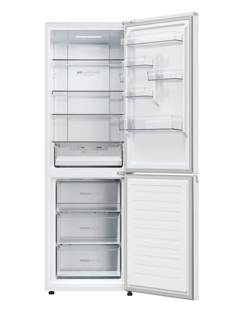 A Haier kétajtós hűtőszekrények az előkelő dizájn és az élvonalbeli funkciók, valamint a csökkentett energiafogyasztás tökéletes kombinációját nyújtják. Ezek a hűtőszekrények a speciális zónák és az egyedülálló fejlett technológiák révén tökéletes élelmiszer-tartósítást tesznek lehetővé. Ezenkívül a hOn App, a mesterséges intelligencia és a Wi-Fi csatlakozás innovatív funkciókat kínál a fokozott élelmiszerek megőrzése érdekében.