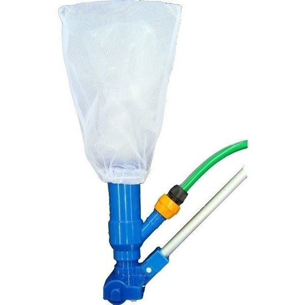 Ha kerti locsolócsőhöz csatlakoztatjuk (minimális nyomás 2 bar), vákuum keletkezik, alsó részében vízörvény jön létre (a Venturi elvnek köszönhetően), amely kizavarja a medence aljáról a szennyeződéseket és közvetlenül a szűrőzsákba szívja.