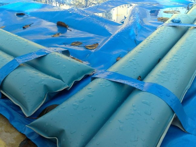 A vízzsák hosszú élettartamú, a legesztétikusabb és legegyszerűbb módja a fólia lesúlyozásának.