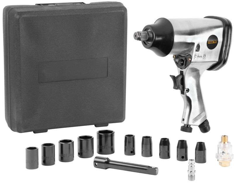 Az Airtool WF-002A ütvecsavarozó készlet 17 precízen válogatott elemmel érkezik, hogy a legmakacsabb kerékcsavarok és szerelési feladatok se jelentsenek akadályt. A 1/2"-os meghajtású, strapabíró, fémházas gép nagy nyomatékot ad le, miközben a kompresszorod biztosítja a folyamatos sűrített levegőt. A tartozék dugókulcsok 9-től 27 mm-ig lefedik a leggyakoribb méreteket, az olajzó és a toldó pedig a gördülékeny, hosszú távú használatért felel. Mindez masszív műanyag bőröndben, hogy egyszerűen szállíthasd.
