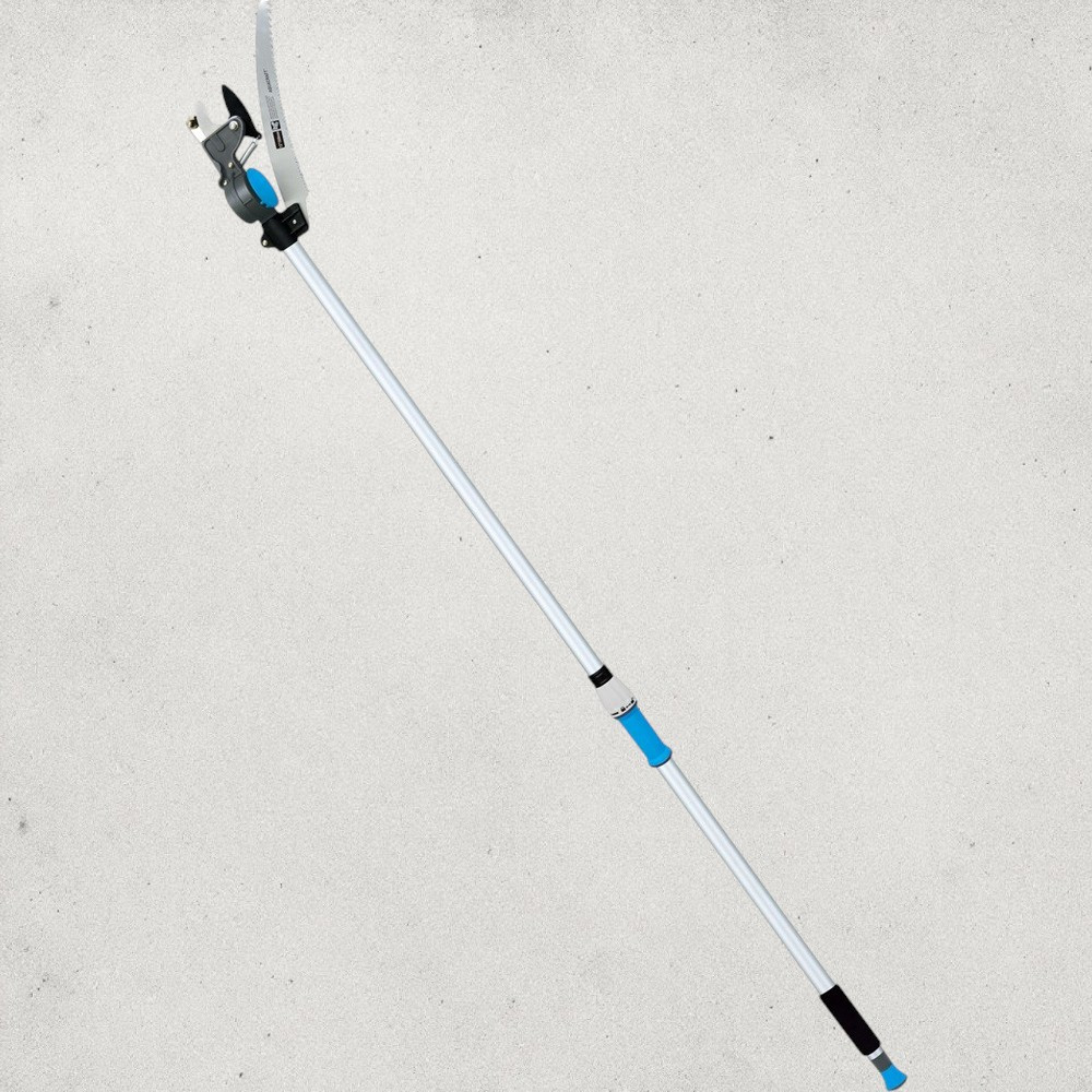 A teleszkópos kar révén a vágás hatósugara akár két méterrel nő, így időt és energiát spórolsz, hiszen nem kell létrát állítgatnod. A beépített fűrész könnyed váltást kínál a vastagabb gallyakhoz, egyetlen szerszámon belül. A puha, csúszásmentes markolat hosszabb munkánál is kényelmes fogást biztosít, a mindössze 1,5 kg súly pedig kíméli a karodat. Rozsdamentes, tapadásmentes pengéi hosszú ideig megőrzik élességüket és tisztán tarthatók.