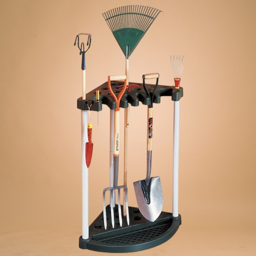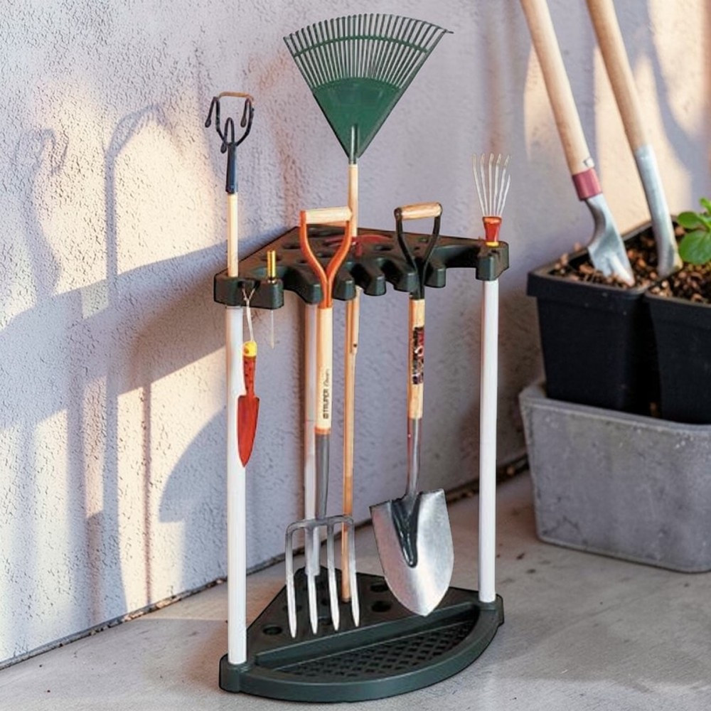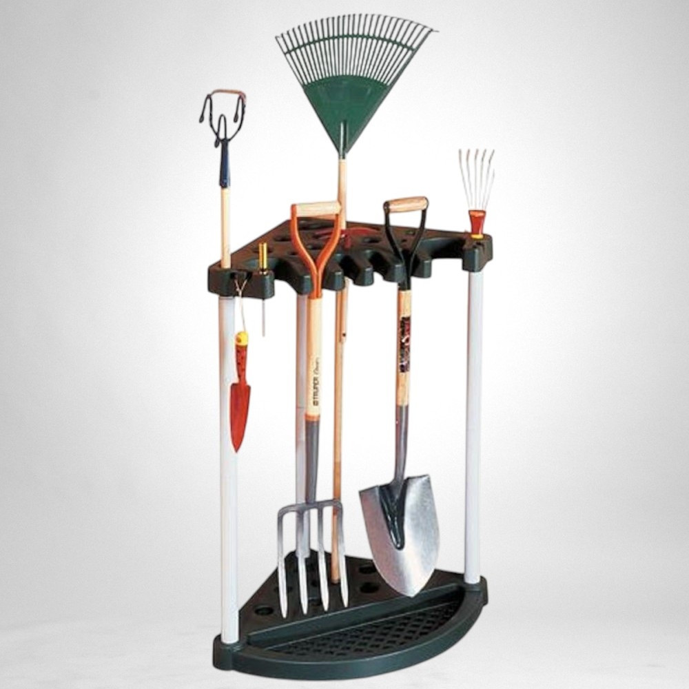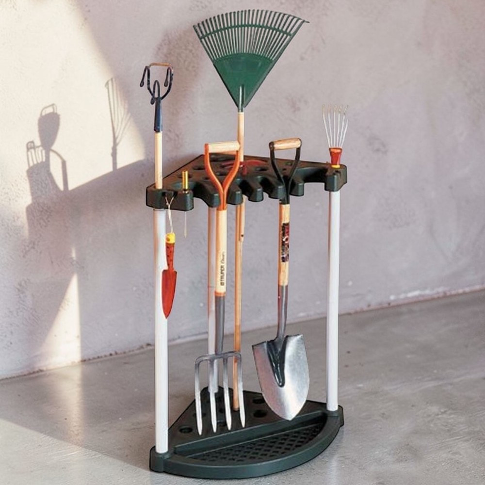 Unod már, hogy a gereblye, lapát és ásó mindig egymásra dől a garázsban? A Keter® 17361063 sarok állvánnyal pillanatok alatt rendszert viszel a káoszba. Háromszög alapú, stabil műanyag váza 24 hosszú nyelű kerti szerszámot fogad be, így a falhoz tolva is minimális helyet igényel. Mindössze 2,5 kg, mégis 20 kg terhelést bír, ezért gond nélkül elbírja a legnehezebb ásót is. A perforált talp megakadályozza a víz felgyülemlését, így a szerszámok szárazon maradnak.