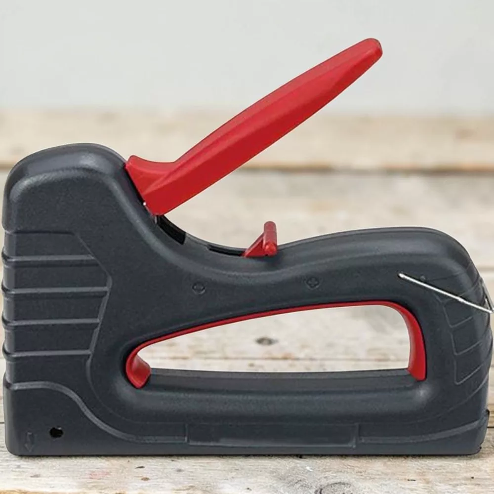 Erős belső mechanikája révén minden lövés egyenletes és határozott, így minimalizálja az újraütések számát és védi a felületet. A szerszám univerzális kialakítása lehetővé teszi 10,6 mm és 11,3 mm koronaszélességű kapcsok használatát, ezért nem kell többféle készüléket tartanod. Súlya mindössze 0,77 kg, így hordozható, mégis stabil. A kar alatti biztonsági retesz megakadályozza a véletlen kioldást, így nyugodtan tárolhatod szerszámosládádban.