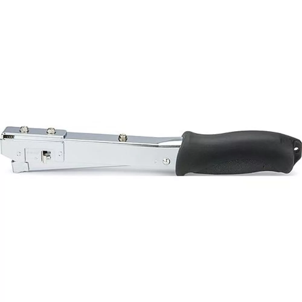 Az HT530 kalapácsos felépítése rendkívül gyors munkavégzést tesz lehetővé: egy csapás, és a kapocs a helyén van, nincs szükség elsütőkar szorítására. A mozdulat közben a markolatba épített ütéscsillapítás csökkenti a visszarúgást, így kevésbé terheli a csuklót. A keskeny fej precíz illesztést biztosít sarkoknál és éleknél is, a robusztus mechanika pedig garantálja, hogy minden kapocs egyenletesen süllyedjen be a felületbe.