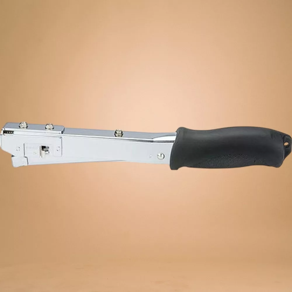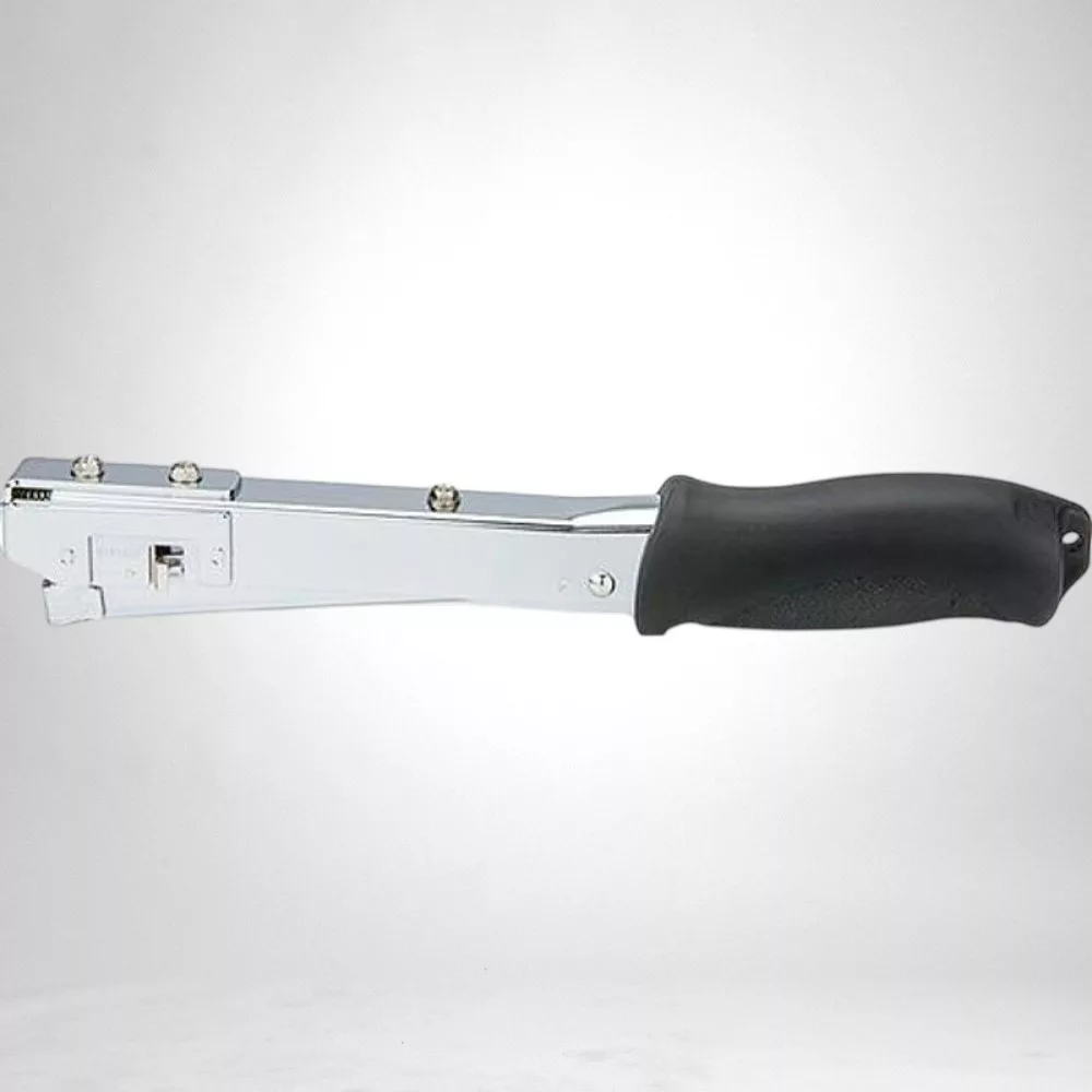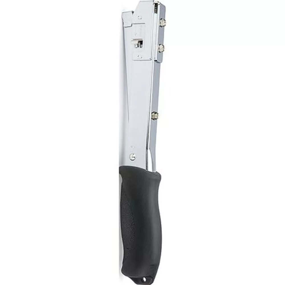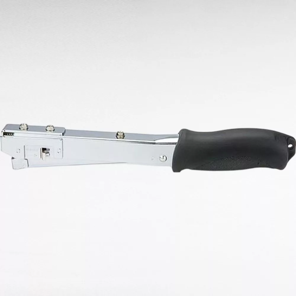 A fémtestet puha, száraz kendővel töröld át munka után, a markolatot enyhén nedves ruhával tisztíthatod. Pár havonta cseppents egy kevés finom gépolajat a mechanikára, hogy a rugók és a tolókar simán mozogjanak. Száraz, hűvös helyen, gyermekektől elzárva tárold, és kerüld a nedvességet, hogy a kapcsok ne rozsdásodjanak.