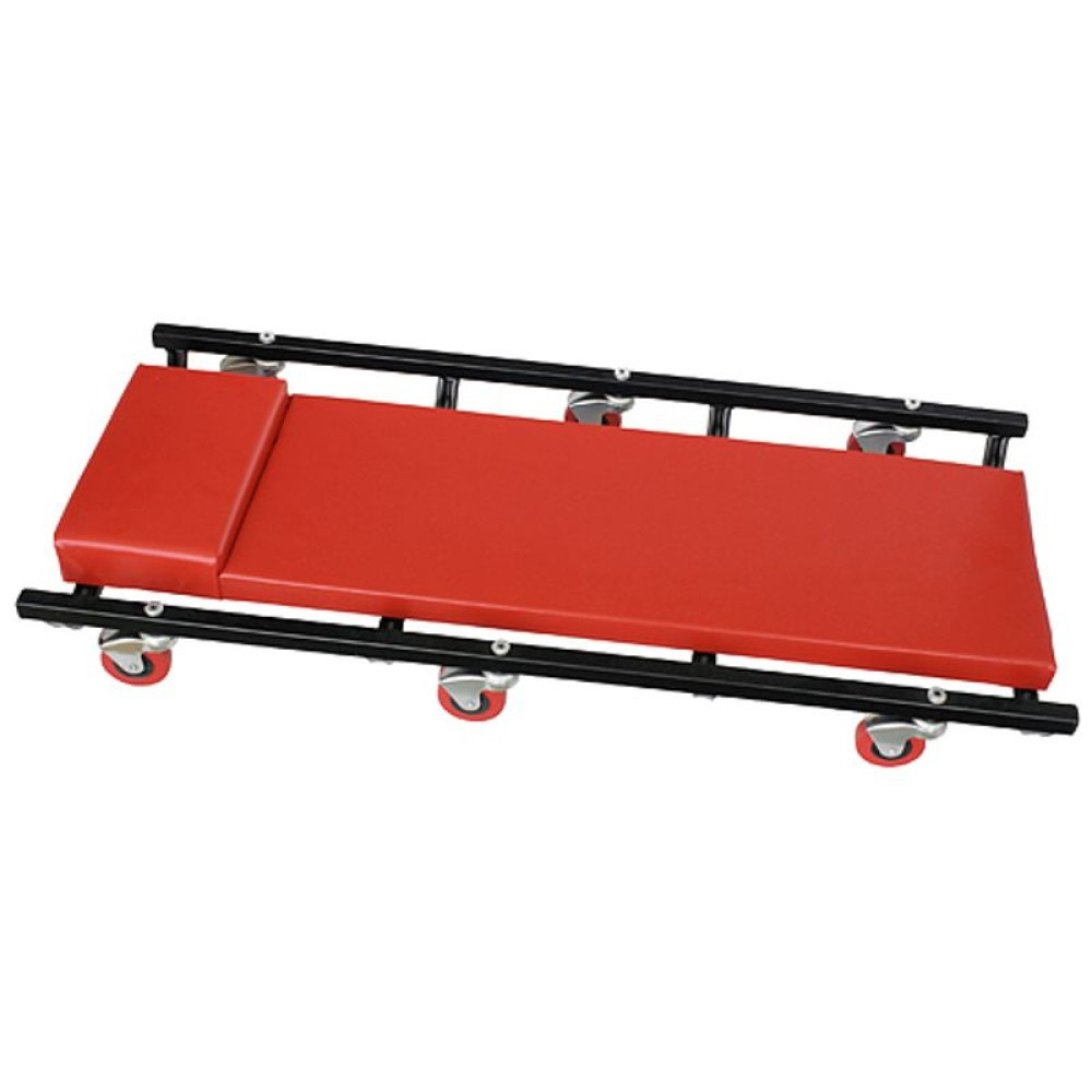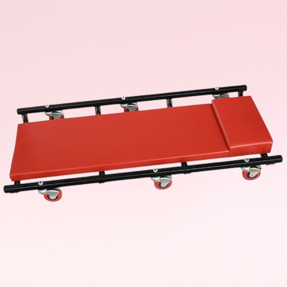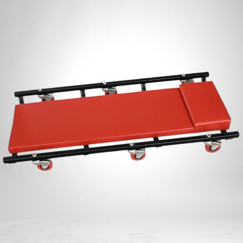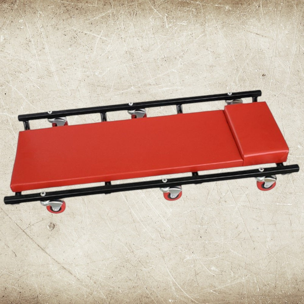 Ergonomikus kialakítása csökkenti a fáradtságot, mert a test súlyát egyenletesen oszlatja el a puha szivacson. A strapabíró acélkeret nagy terhelést bír, a golyóscsapágyas görgők pedig csendes, akadálytalan mozgást biztosítanak. Lapos profiljának köszönhetően szűk helyekre is könnyedén begurulhatsz az autó alá. A piros, olaj- és koszálló műbőr borítás egyszerűen letörölhető, így a pad mindig tiszta és munkára kész marad.