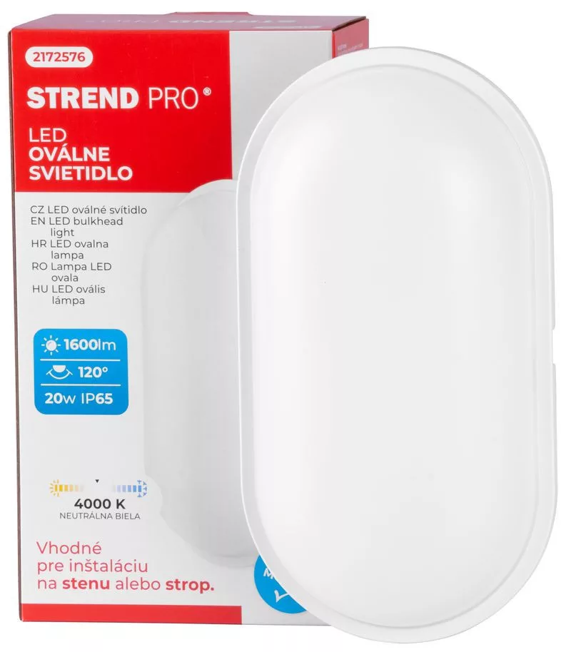 A Strend Pro Bulkhead ovális LED lámpa 1600 lumenes fényáramával pillanatok alatt ragyogóvá varázsolja a belső tereket. A mennyezetre vagy falra rögzíthető, 145 x 270 mm-es test letisztult, fehér borítást kapott, így észrevétlenül simul bármilyen enteriőrbe. Az SMD 2835 LED chipek energiatakarékosan működnek, 120°-os szórásszögüknek köszönhetően egyenletesen, árnyékmentesen világítják be a helyiséget. IP65 védelem óvja a portól és fröccsenő víztől.