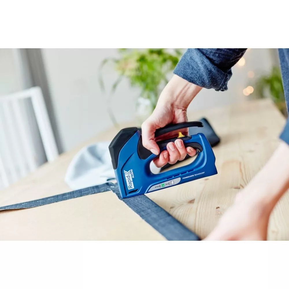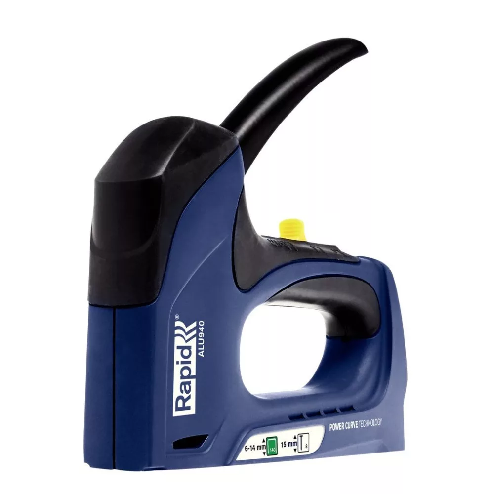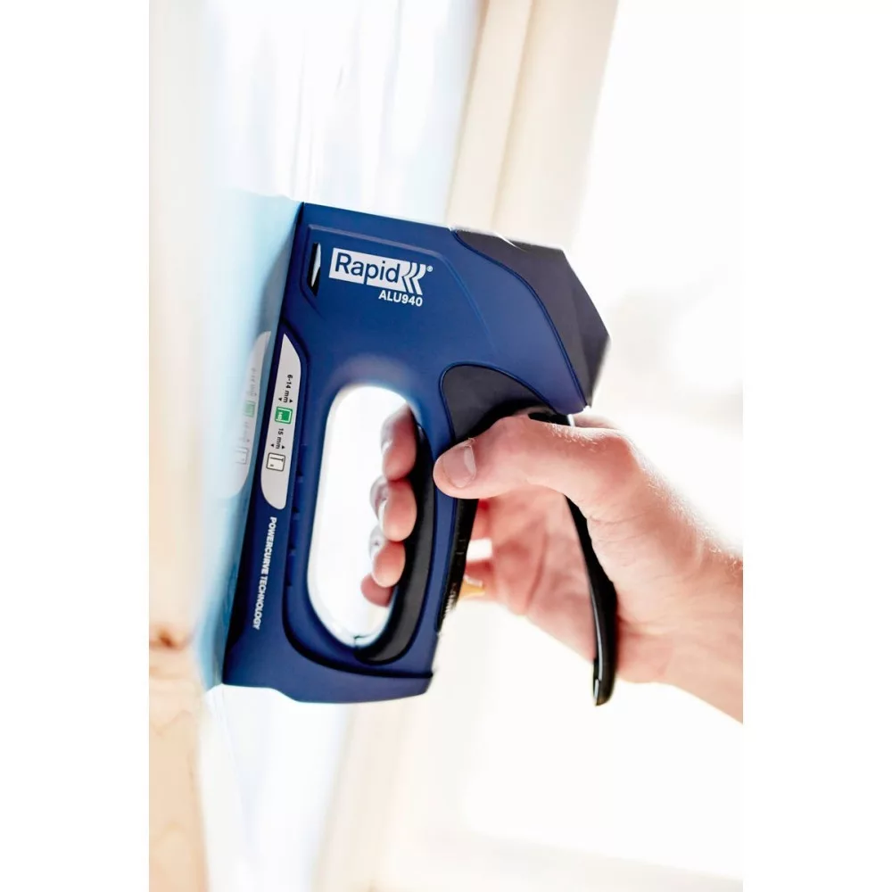 Vidd magaddal a műhelyedbe vagy a lakásfelújítási projektekhez a Rapid ALU 940 kézi, kárpitos tűzőgépet! Alumínium háza könnyű, mégis masszív, innovatív Powercurve technológiája pedig akár 65 %-kal kevesebb kioldóerőt igényel. A 140-es típusú, 6–14 mm hosszú kapcsokkal, valamint 8–15 mm-es szegekkel kompatibilis készülék ideális falécek, keménylemez, szigetelőanyag, fólia vagy kárpit gyors és tartós rögzítéséhez.