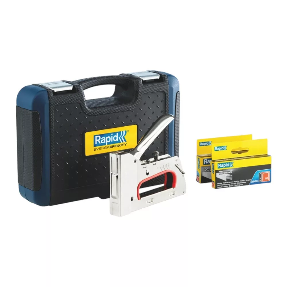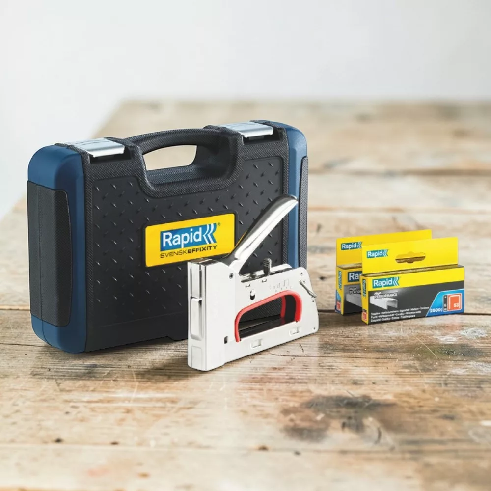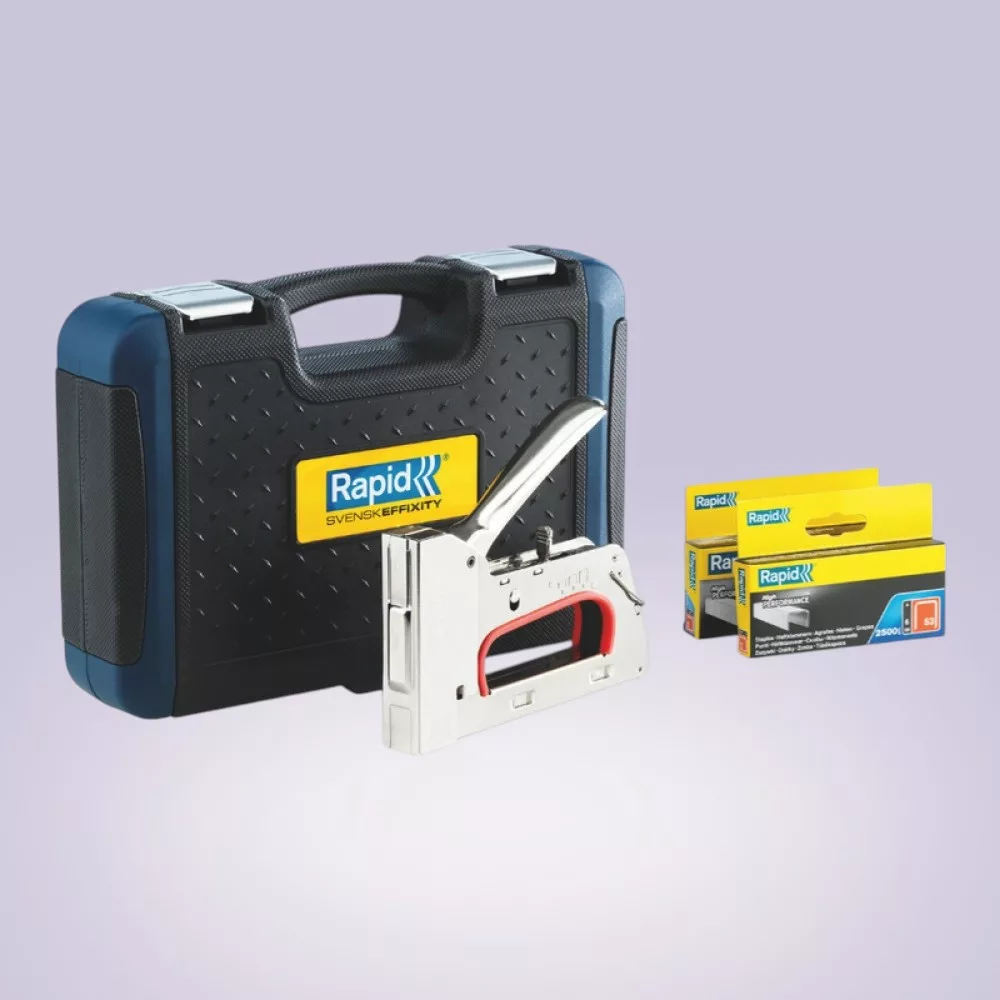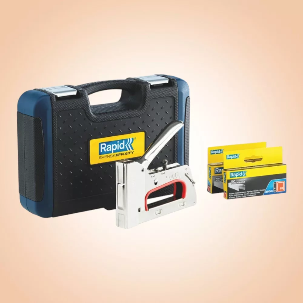 Robusztus fémvázas kialakításának köszönhetően a Rapid R353 tűzőgép megbízható társ minden kárpitos, dekoratőr vagy barkácsoló számára. A készülék 53-as típusú, 6–14 mm hosszúságú kapcsokkal dolgozik, így könnyedén rögzíthetsz textilt, fóliát, bőrt vagy vékony faelemeket. Ergonomikus, csúszásmentes fogantyúja hosszabb munkánál is kíméli a kezet, a mellékelt, masszív koffer pedig megóvja a szerszámot és megkönnyíti a szállítást.