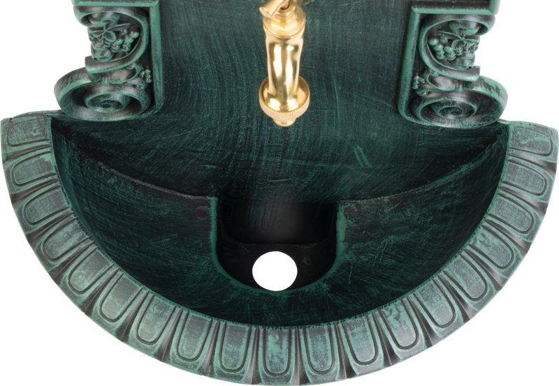 Ez az antik zöld falikút egyszerre romantikus és praktikus. Az alumínium váz nem rozsdásodik, nem reped, így egész évben kint hagyhatod anélkül, hogy a festék lepattogna. A stabil fali rögzítés biztonságosan elbírja a vödör, locsolókanna vagy kerti tömlő súlyát, a sárgaréz csap pedig pontos vízadagolást tesz lehetővé. Minimális karbantartást igényel, hogy te a kerted szépségére összpontosíthass.