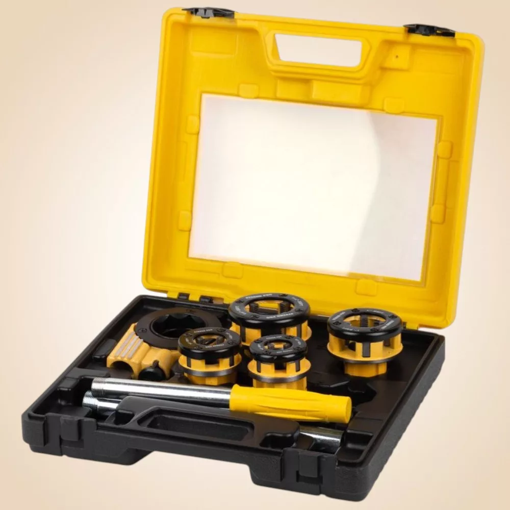 Vágj pontos külső meneteket pillanatok alatt a menetvágó készlet Strend Pro RDS-8824 segítségével! A 6 elemből álló, profi kivitelű szett négy cserélhető fejjel (1/2", 3/4", 1", 5/4") érkezik, így a leggyakoribb csőméretekhez azonnal kéznél lesz a megfelelő betét. A racsnis hajtókar és a csúszásmentes fogantyú felgyorsítja a munkát, a stabil rögzítőgyűrű pedig biztos tartást ad. Mindez egy strapabíró, sárga-fekete műanyag hordtáskában kap helyet, hogy a 5,63 kilogrammos készlet rendezett és jól védett maradjon.