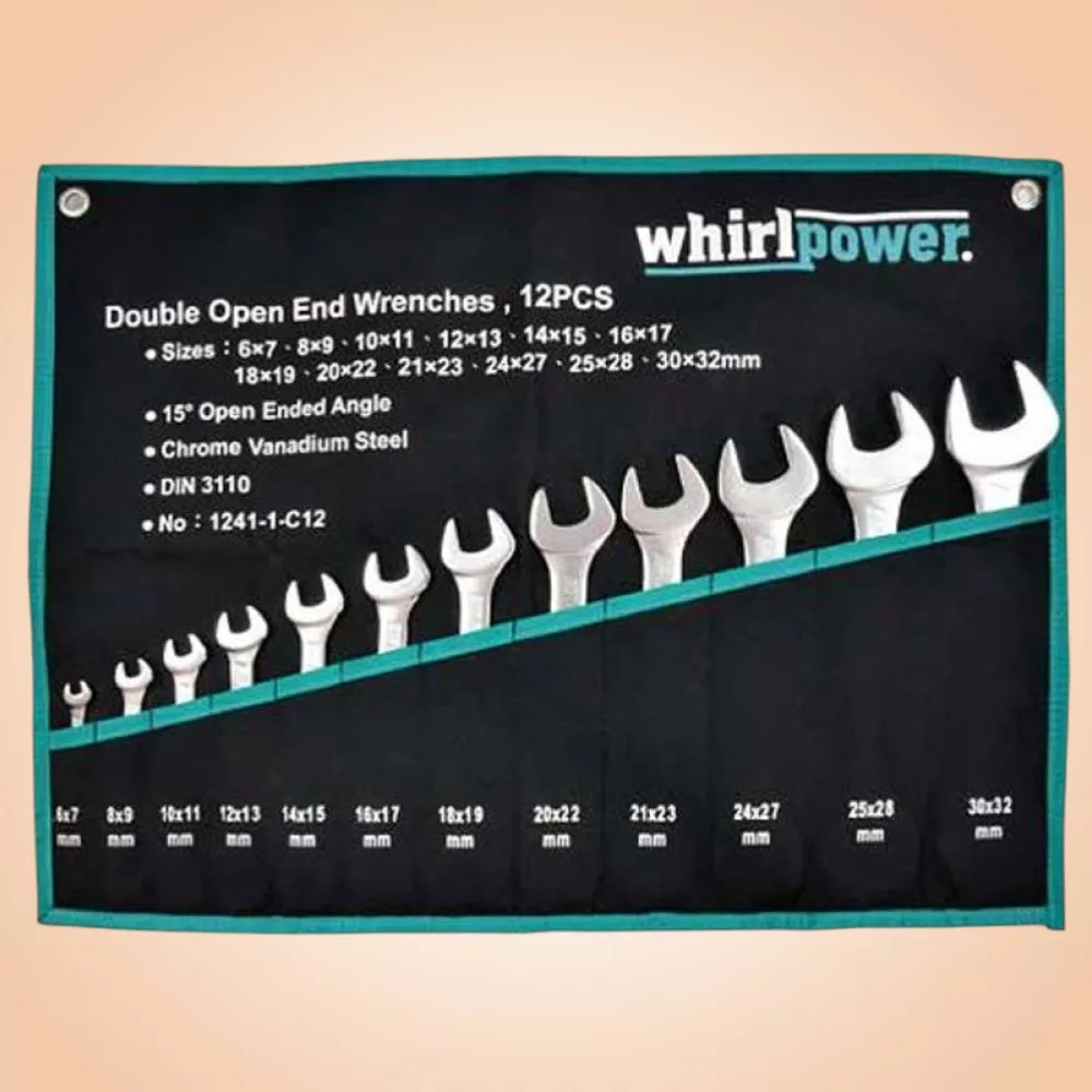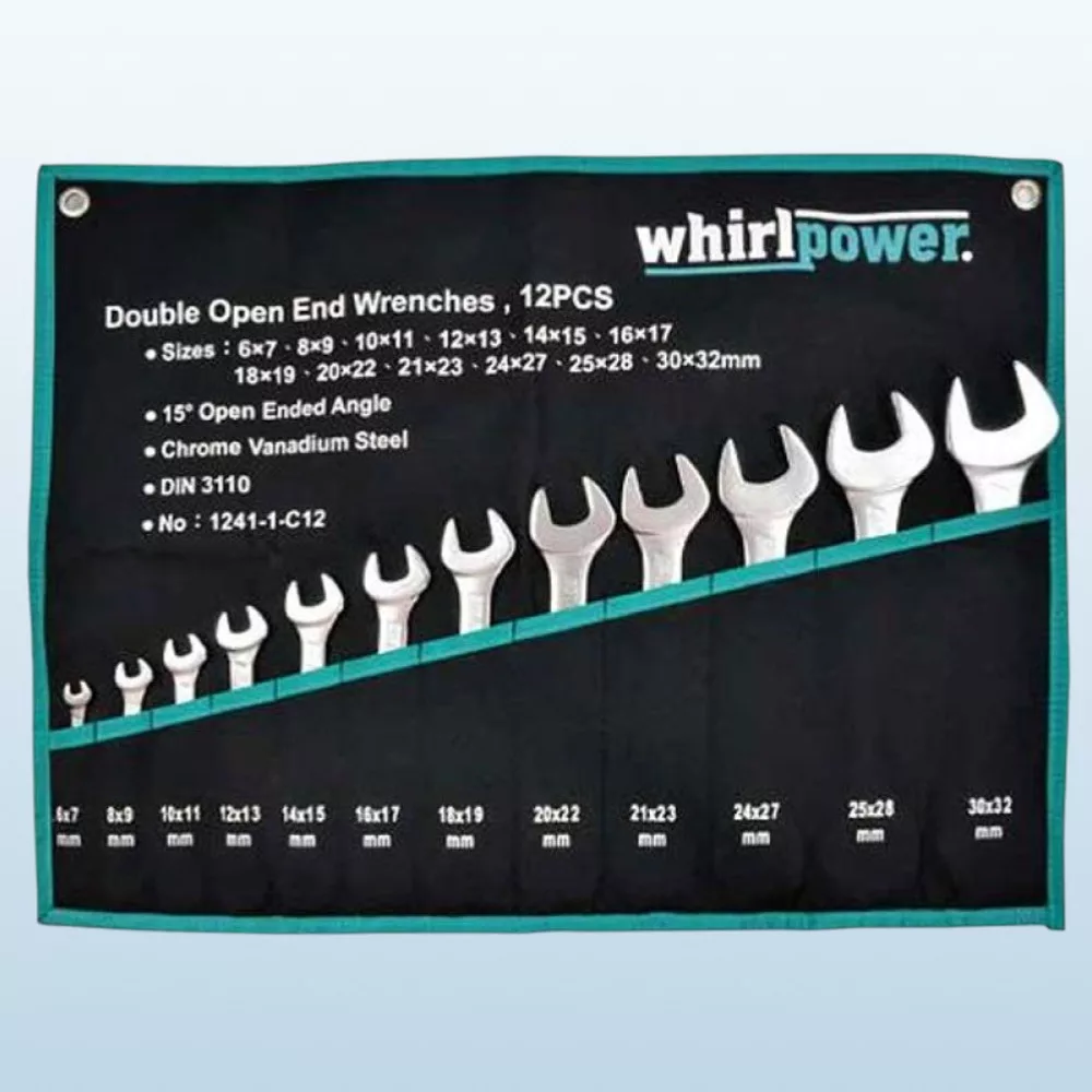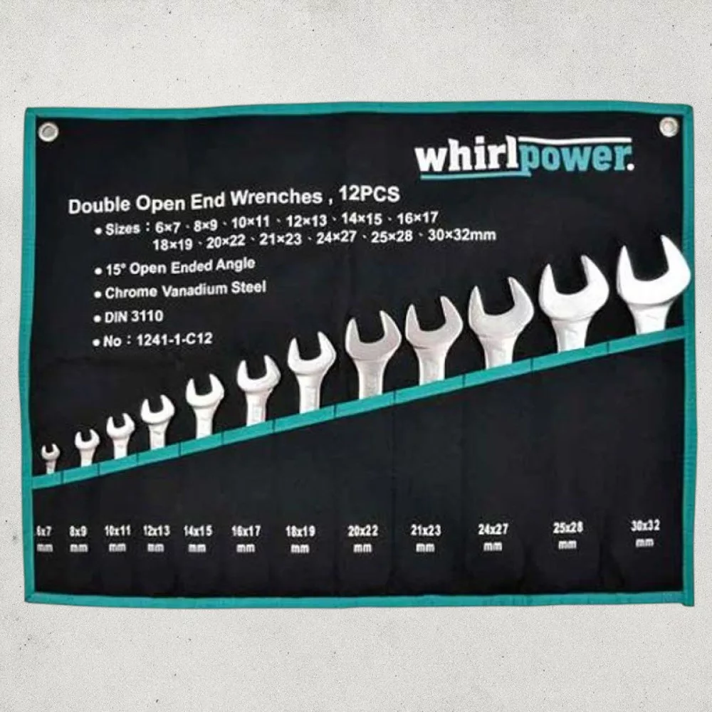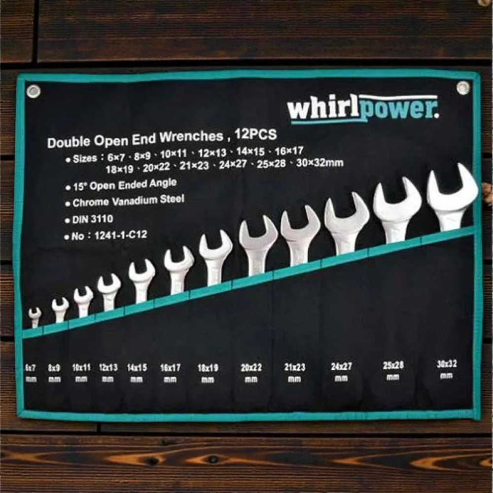 A Whirlpower 1241-1-C12 12 részes villáskulcskészlet nélkülözhetetlen társ a műhelyben és a ház körüli szereléseknél. A króm–vanádium acélból kovácsolt, dupla nyitott végű kulcsok 15°-ban döntött pofával rendelkeznek, így szűkebb helyeken is kényelmesen forgathatók. A méretkínálat 6x7 mm-től egészen 30x32 mm-ig terjed, lefedve a leggyakoribb csavar- és anyaméreteket. A kopás- és rozsdaálló felület hosszú élettartamot biztosít, a feltekerhető textil tok pedig rendezetten tartja a szerszámokat.