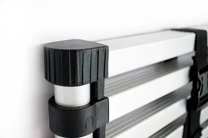 A létrát használat után száraz ronggyal töröld le, hogy a por és nedvesség ne tapadjon a csúszófelületekre. Erős vegyszert ne alkalmazz, elegendő a langyos, enyhén szappanos víz. Száradás után zárd össze, és tárold hűvös, száraz helyen, hogy az alumínium felület hosszú ideig megőrizze fényét és merevségét.