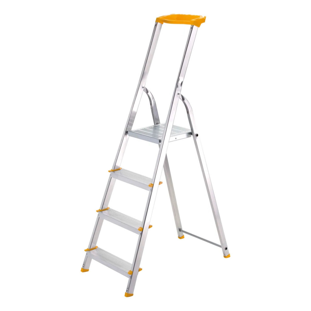 Festőlétra, ALVE Eurostyl 1944, 4 fokos, 76 cm, ezüst, alumínium, összecsukható, tárolópolcos