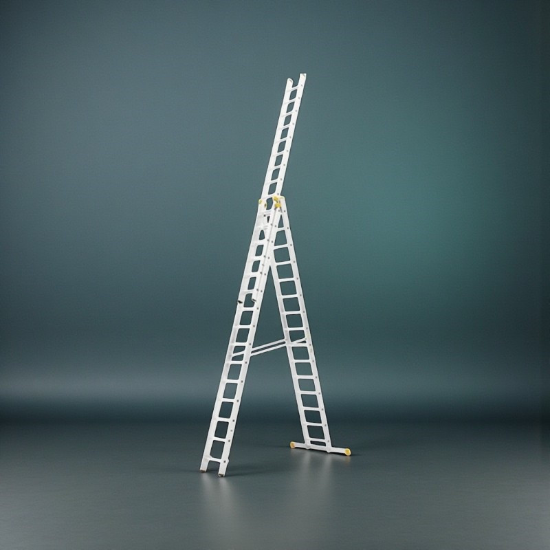 Tapasztald meg a professzionális munkavégzés szabadságát a Létra ALVE FORTE PROFI PLUS 8615 univerzális, 3x15 fokos modelljével! A három összekapcsolt szár egyetlen mozdulattal állólétrává vagy magasra nyúló kitolható létrává alakítható, így ugyanazzal az eszközzel biztonságosan elérheted a padlástól a homlokzatig bármely munkaterületet. Stabil hevederek, csúszásmentes talpak és megerősített fokok gondoskodnak róla, hogy minden lépésed magabiztos legyen, miközben a 40 kg-os szerkezet ipari igénybevételre készült.