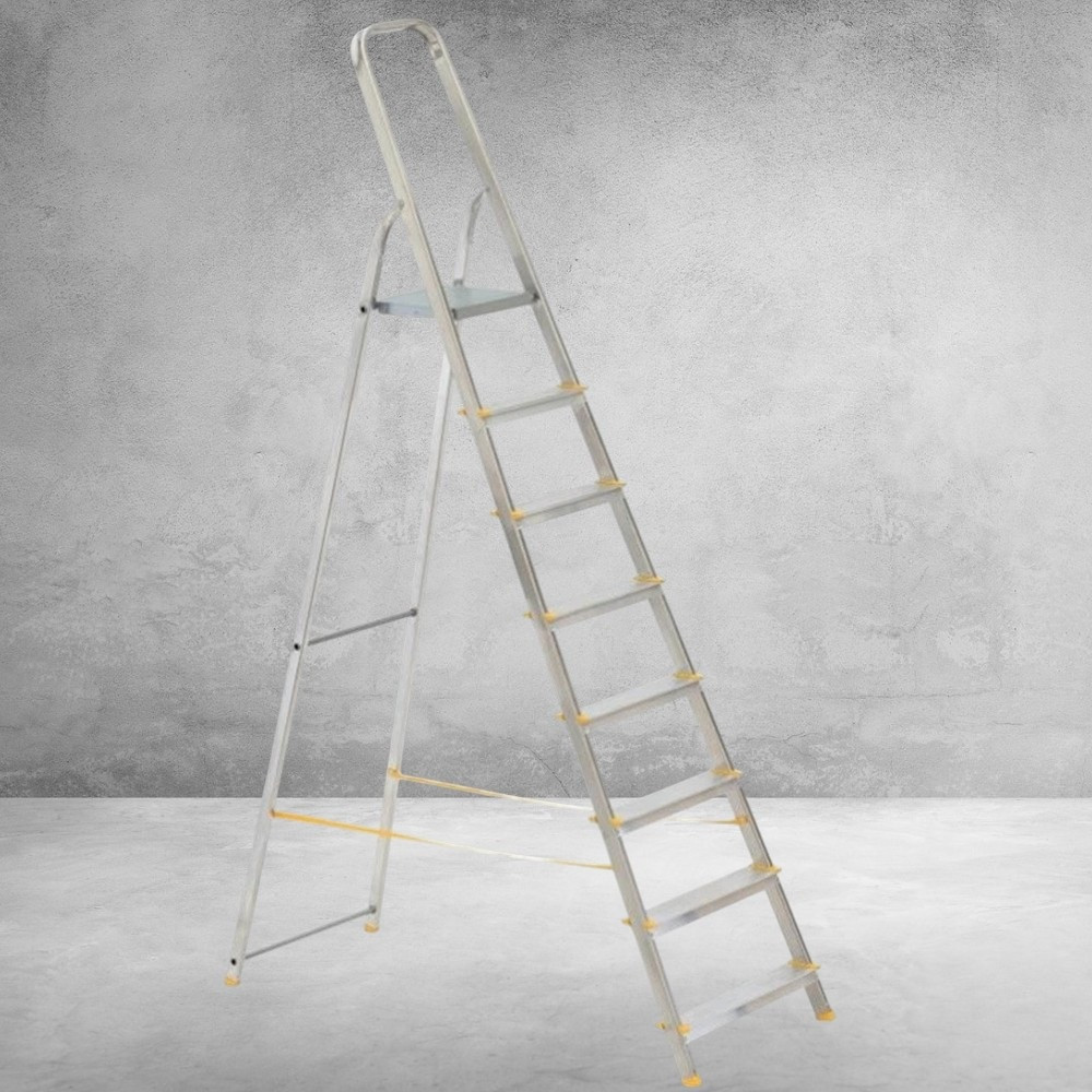 A létrát használat után töröld át nedves, puha ruhával. Kerüld a maró hatású tisztítószereket, hogy megőrizze az alumínium felület fényét és élettartamát. Száraz, fedett helyen tárold, távol a nedvességtől és a közvetlen napsütéstől.