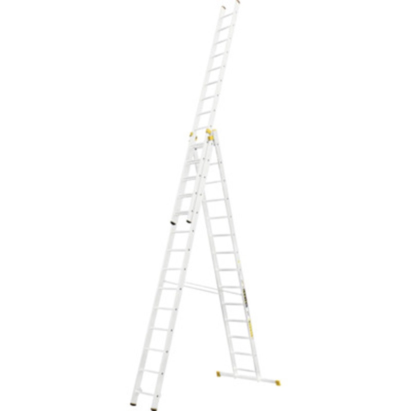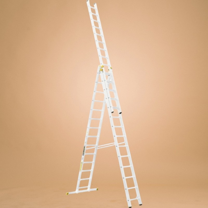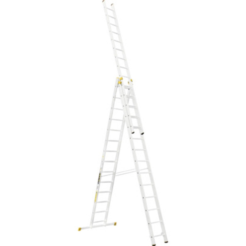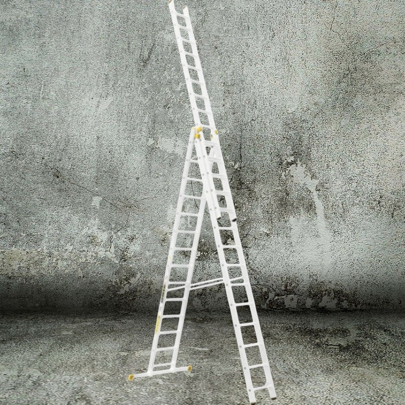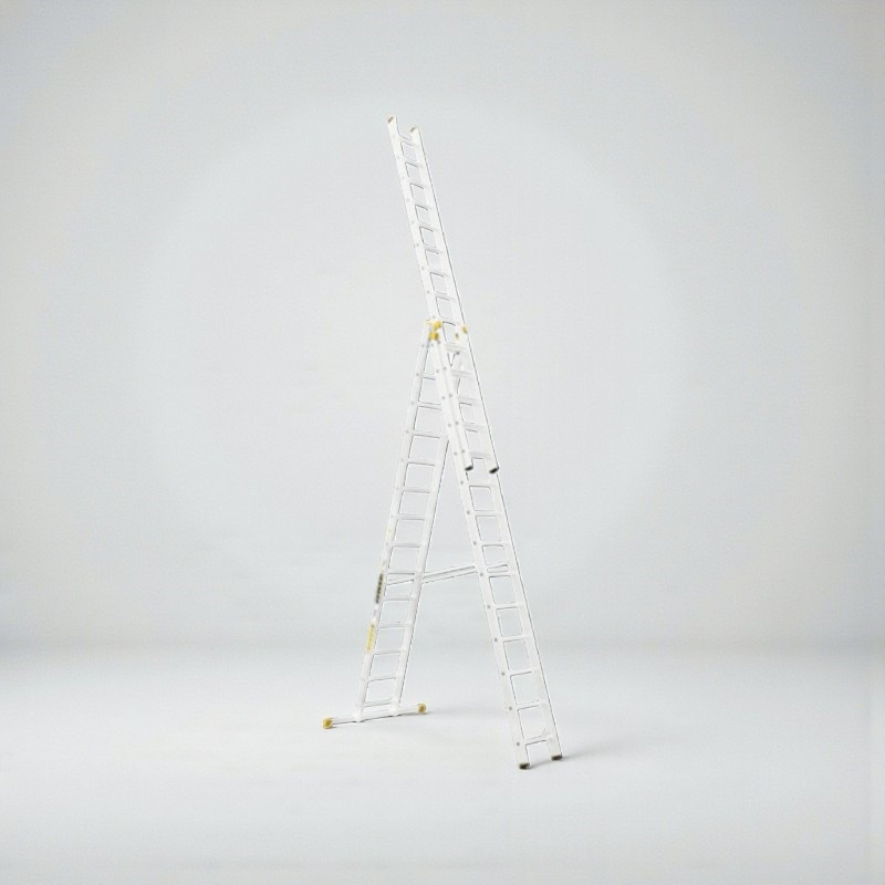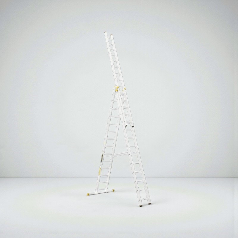 Építsd fel a profi munkakörnyezetet a Létra ALVE FORTE PROFI PLUS 8614, 3x14 fokos univerzális létrával! A háromrészes alumínium szerkezetet igény szerint támasztólétraként, A-állásban vagy teljesen kihúzva is használhatod, így a padló- és mennyezetközti munkák egyetlen eszközzel megoldhatók. A sárga csúszásgátló lábdugók, a masszív kitámasztó heveder és a bordázott fokok gondoskodnak a biztonságról, míg a 34,5 kg-os robusztus felépítés hosszú élettartamot garantál.