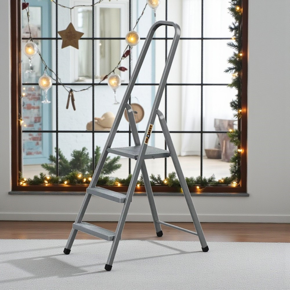 A Strend Pro ST-D3 létra ideális választás otthoni karbantartási, festési vagy polcrendezési munkákhoz. Könnyen kezelhető, mégis rendkívül masszív acél szerkezete 125 kg teherbírású. Összecsukható formájának köszönhetően kevés helyet foglal, így praktikus megoldás kis lakásokba, garázsokba vagy műhelyekbe. Széles, kényelmes fokai stabil állást biztosítanak, a csúszásmentes lábak pedig biztonságossá teszik a munkavégzést bármilyen felületen.