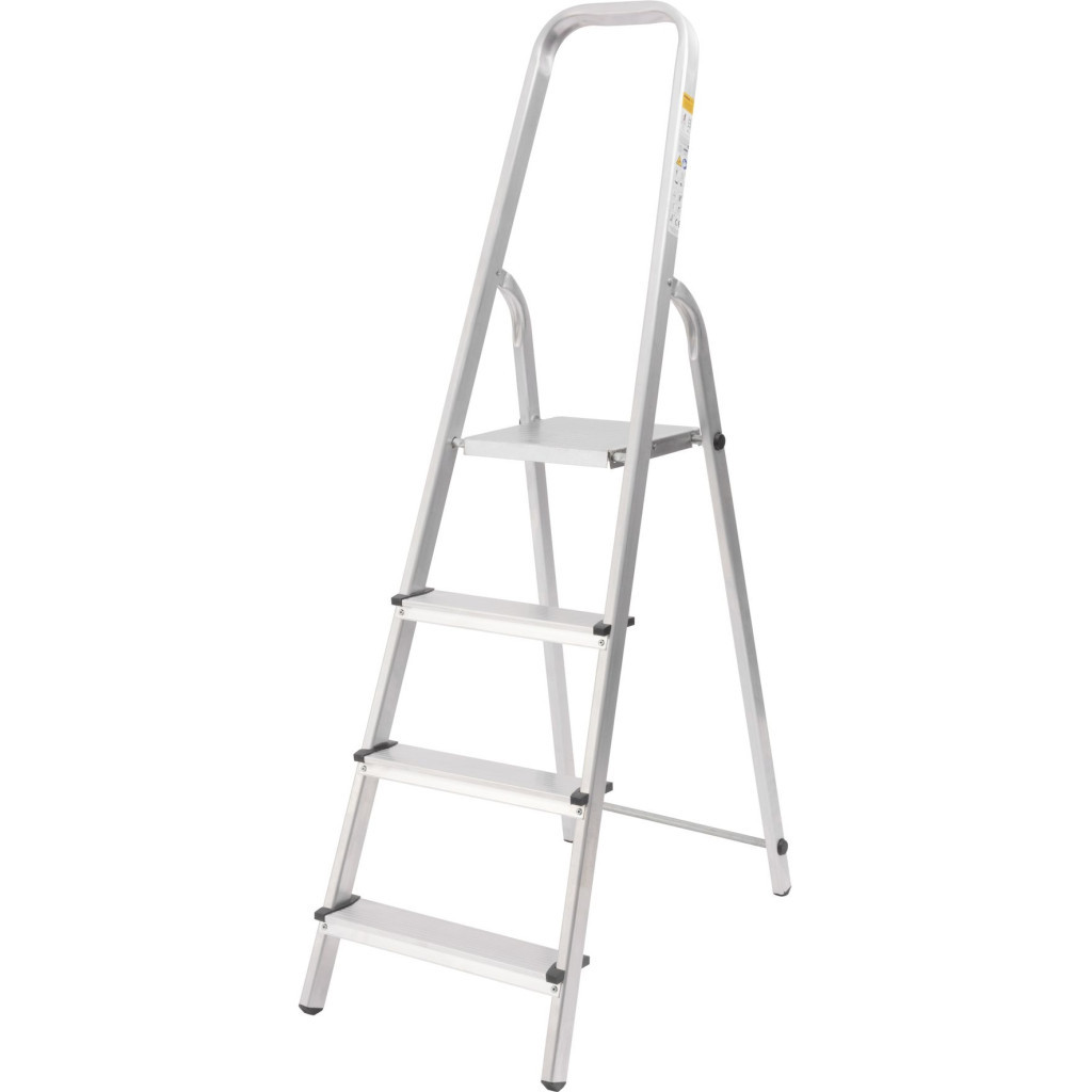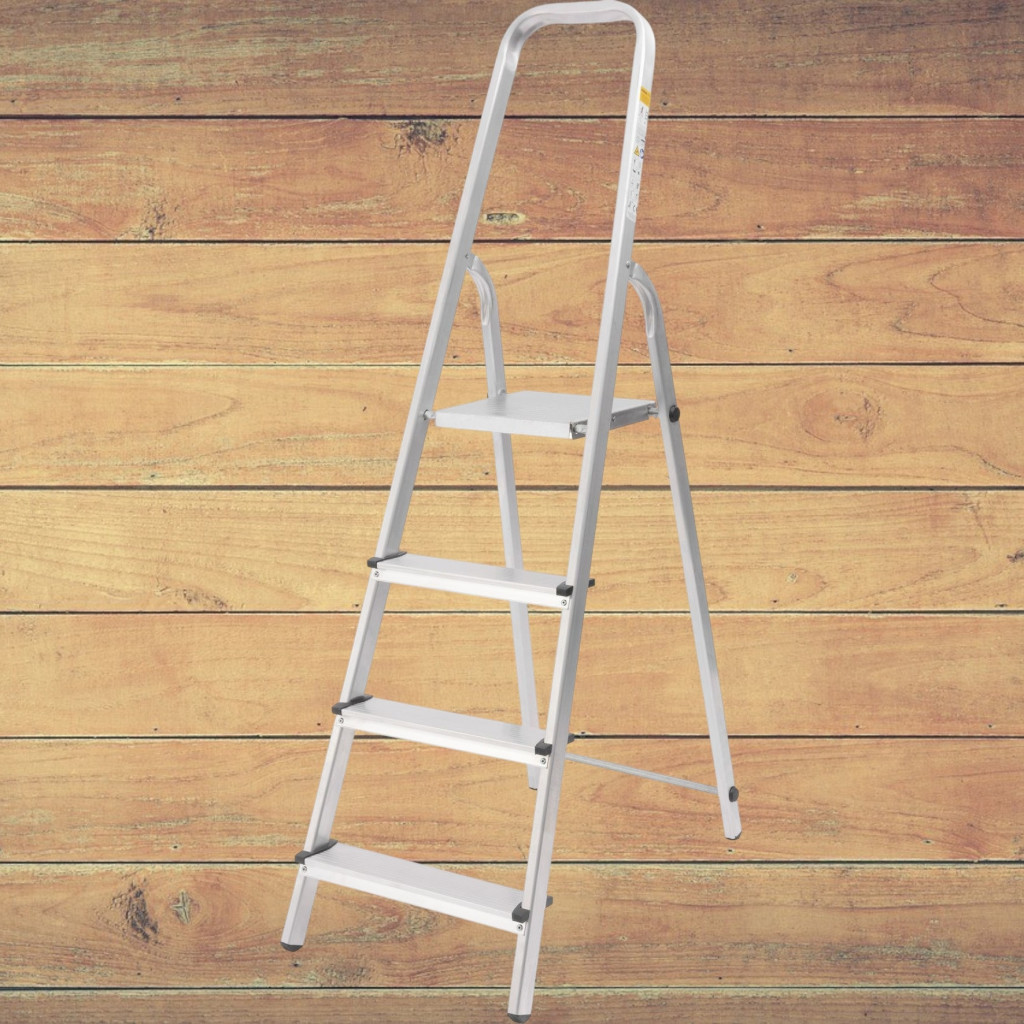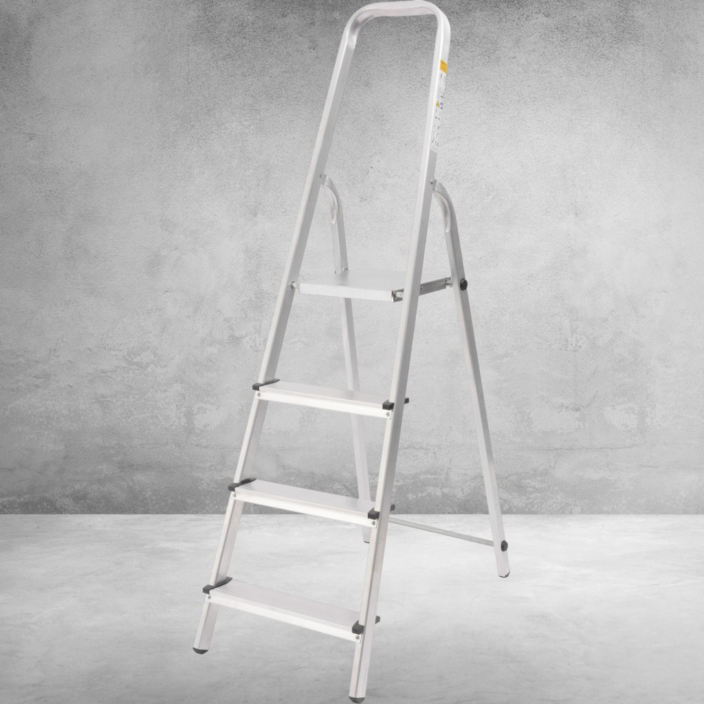 Festőlétra, StrendPro D4, 4 fokos, alumínium, 75 cm, ezüst, összecsukható, csúszásmentes kivitel