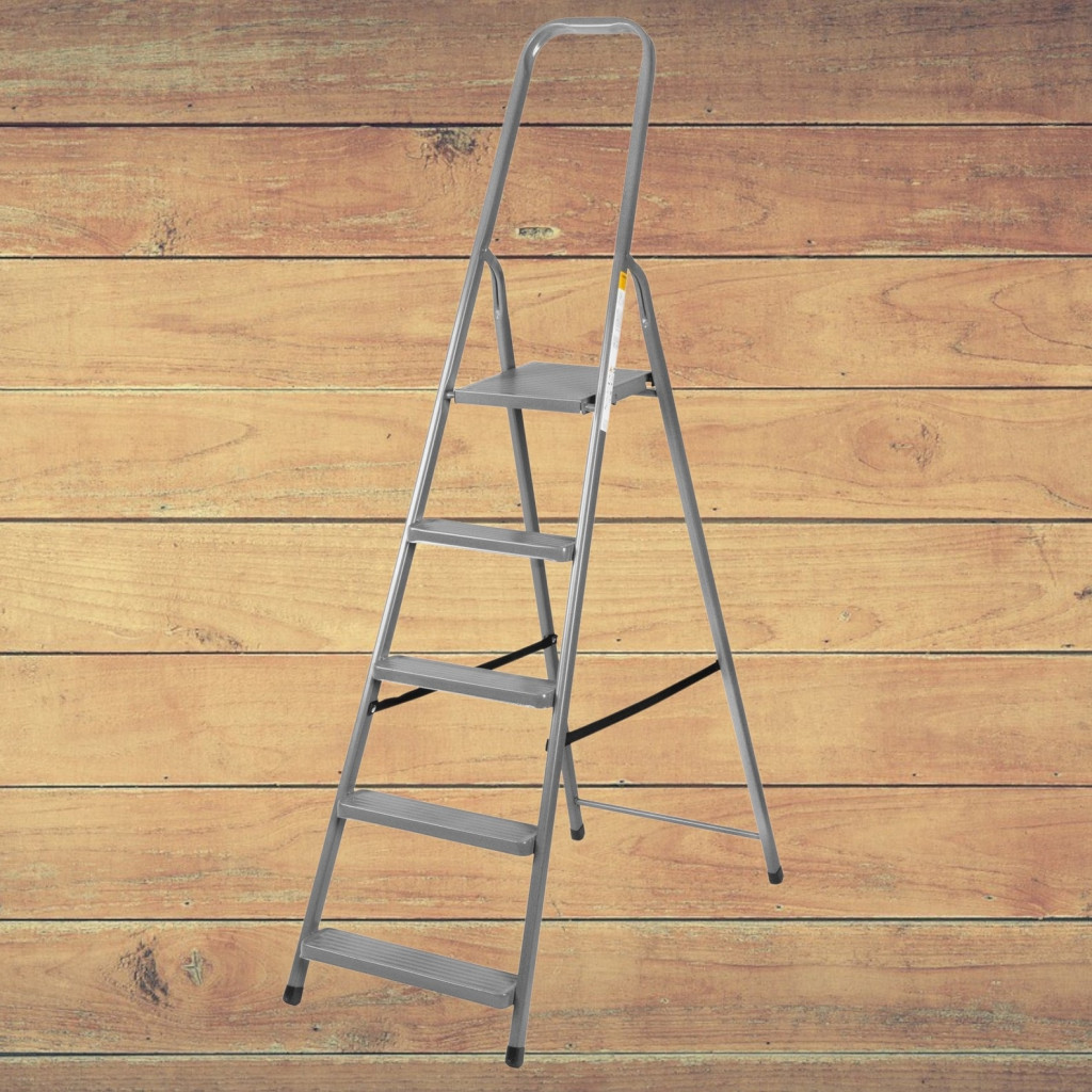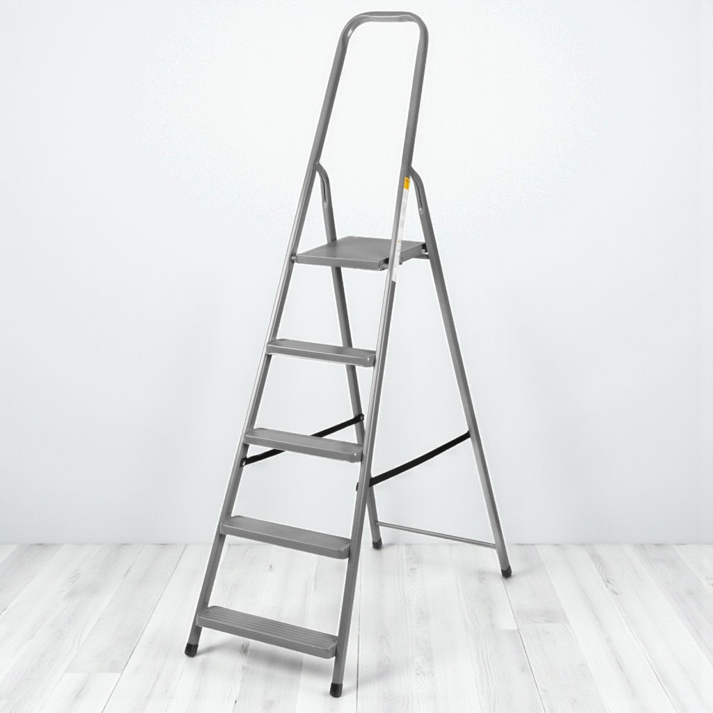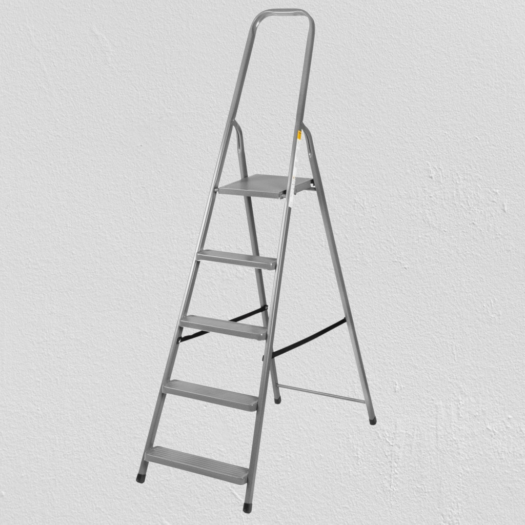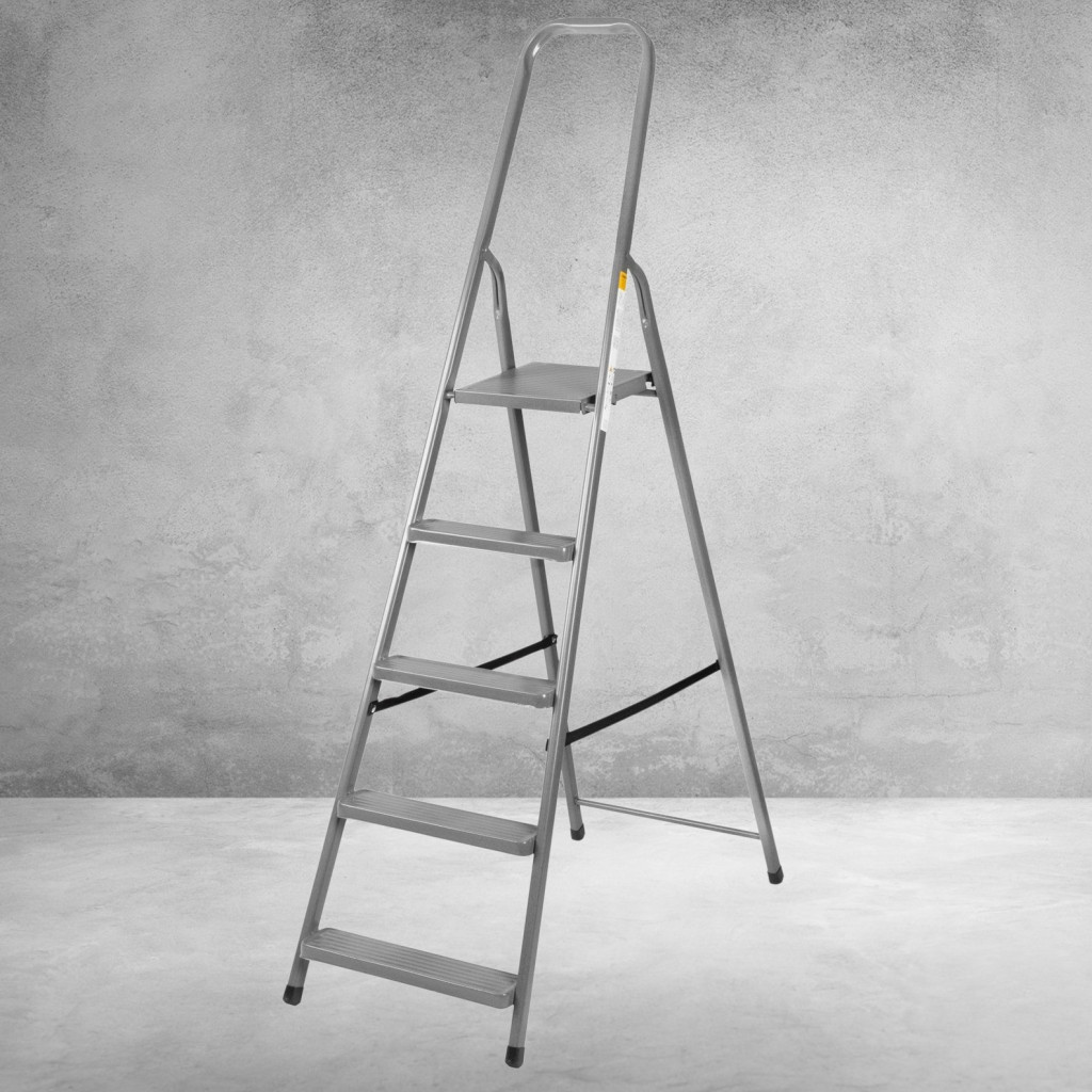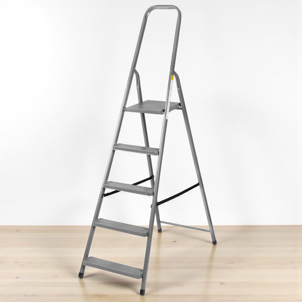 Festőlétra, Strend Pro ST-D5, 5 fokos, acél, 100 cm, szürke, összecsukható stabil kivitel
