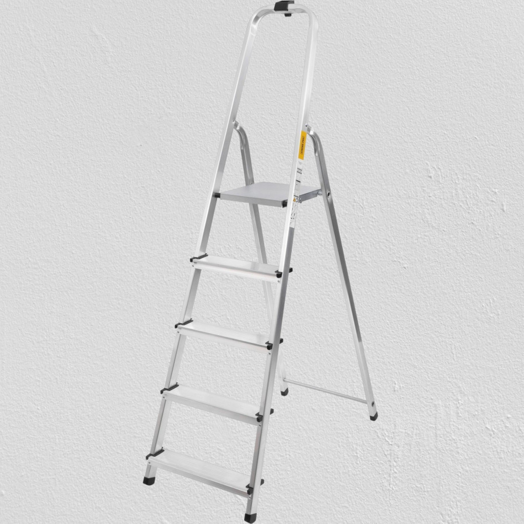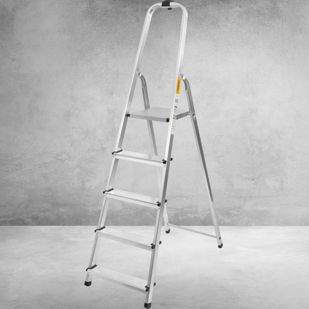 Festőlétra, StrendPro D5, 5 fokos, alumínium, 97 cm, ezüst, összecsukható, csúszásmentes kivitel