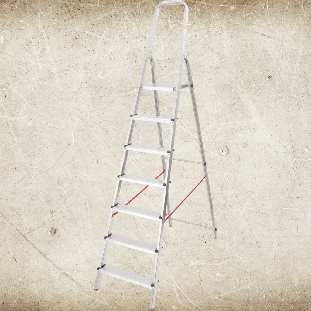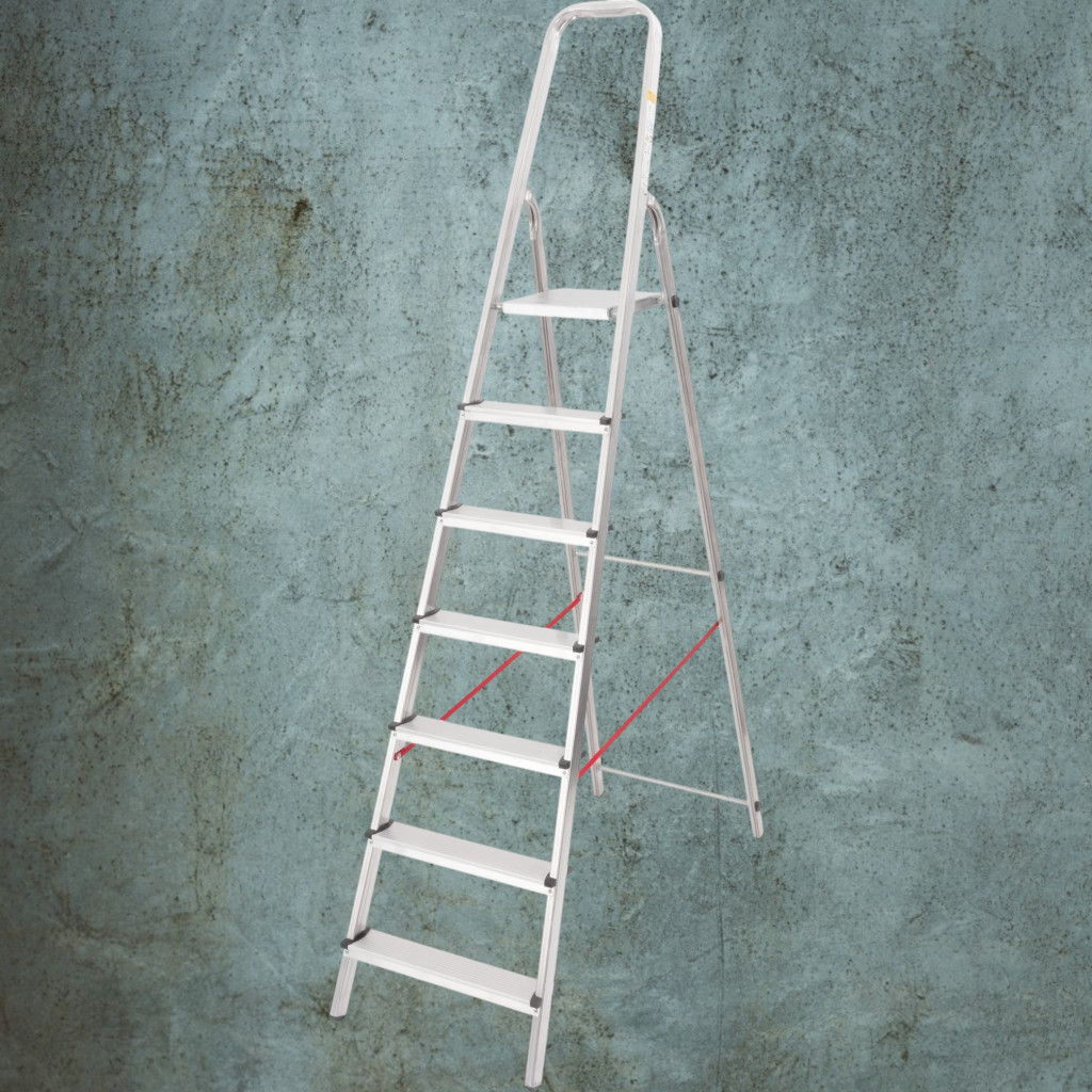Festőlétra, StrendPro D7, 7 fokos, alumínium, 140 cm, ezüst, összecsukható, csúszásmentes kivitel