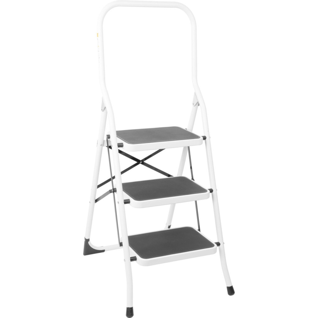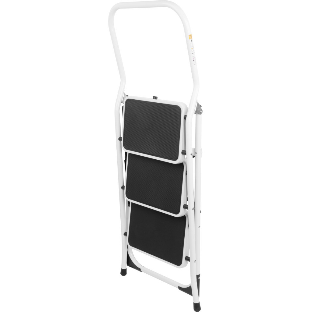 Festőlétra, Strend Pro LFT130, 3 fokos, 66 cm, acél, fehér, csúszásgátlós, összecsukható