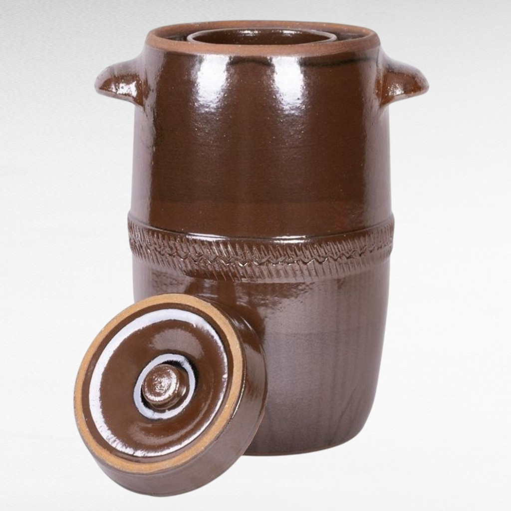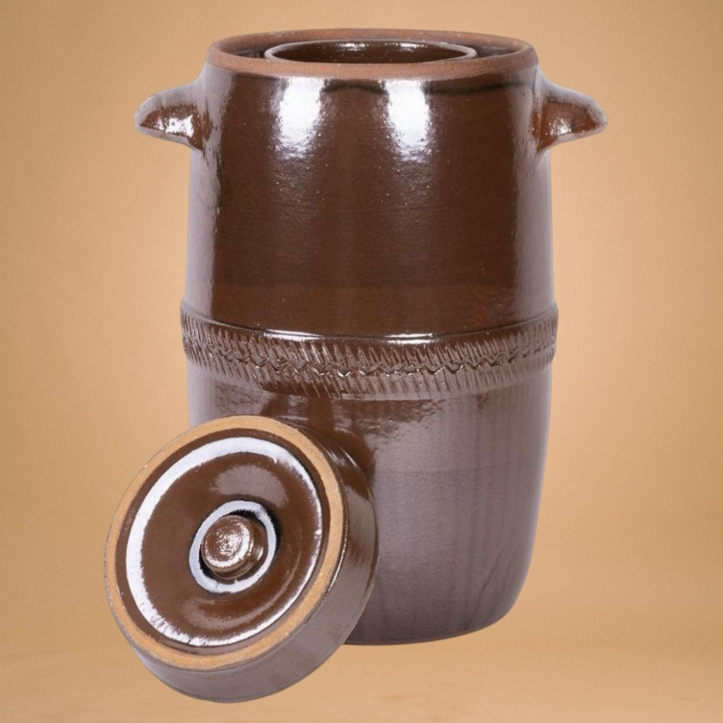 A vastag kerámia fal lassan veszi át a hőmérsékletet, így stabil, hideg környezetben tarthatod a savanyítanivalót, ami elősegíti az egyenletes erjedést. A hordó belseje simára égetett, így nem tapad rá a káposzta, könnyebb a tisztítás, és kevesebb só lerakódás képződik. A praktikus fogantyúk révén akár telten is könnyedén áthelyezheted az edényt a kamrába vagy a pincébe. A fedő gyűrűs kialakítása vízzárat képezhet, amely meggátolja az oxigén bejutását, de elengedi a képződő gázokat.
