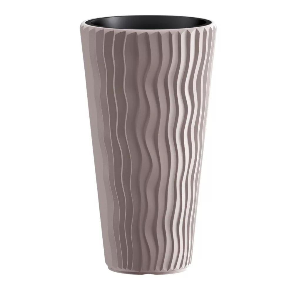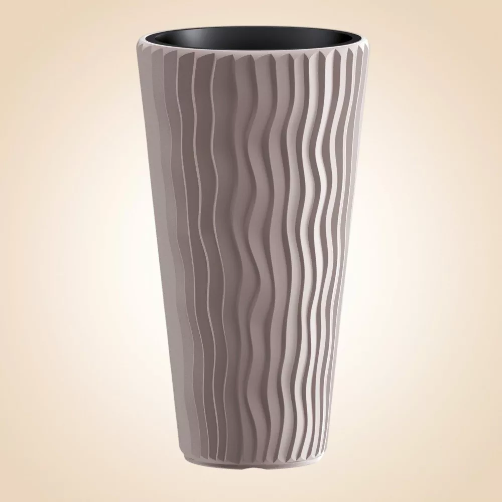 Élénk mokka árnyalatával és markáns, függőleges hullámrajzolatával a Prosperplast SANDY Slim 400 virágcserép azonnal eleganciát csempész otthonodba vagy teraszodra. Magas, karcsú testének köszönhetően látványos fókuszpontot hoz létre, miközben minimális helyet foglal. A kivehető belső betét megkönnyíti az ültetést, csökkenti a virágföld mennyiségét, és biztosítja a gyökerek egészséges levegőzését, a 1,91 kg-os tömeg pedig stabilitást ad szeles időben is.