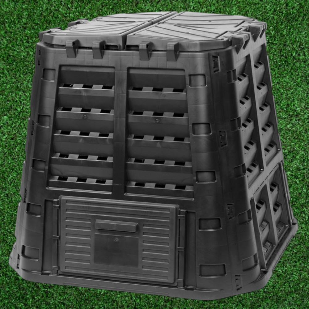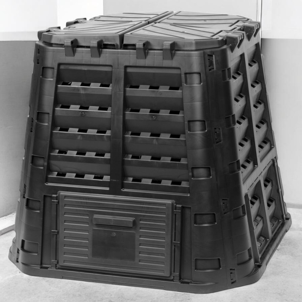 Régi kerti hulladékodból pár hónap alatt tápanyagban gazdag komposztot készíthetsz a Komposztáló ECO Multi, 480 literes változatával. A fekete, újrahasznosított PE műanyagból készült, stabil falú tartály egész évben helytáll: lamellás oldalfala folyamatos légáramlást biztosít, a tető kisebb rései beengedik az esőt, de távol tartják a kártevőket. Szerszám nélkül összepattintható elemei és a levehető alsó ajtó megkönnyítik a kezelést, míg a földi horgonyok viharos időben is a helyén tartják.