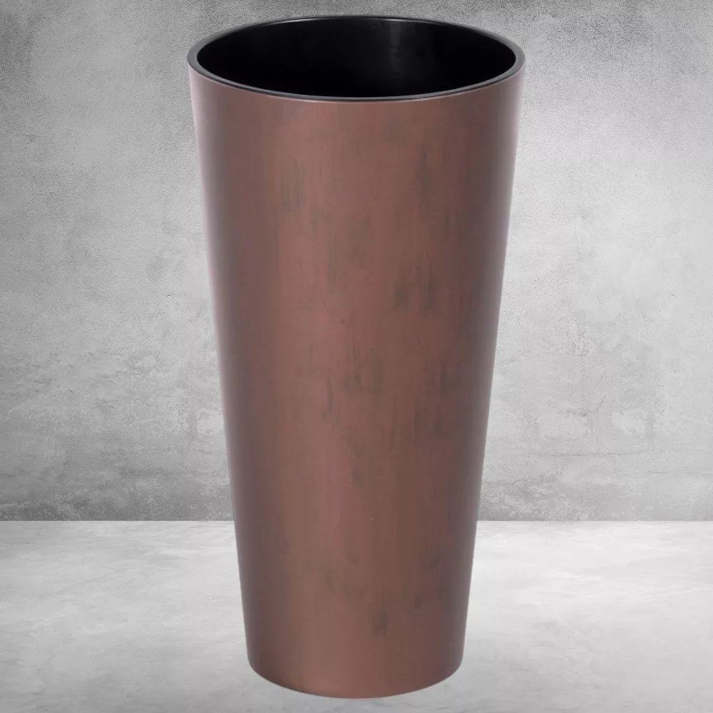 Modern, réz hatású külseje különleges loft hangulatot teremt anélkül, hogy a valódi fém gondozást igényelne. A betétnek köszönhetően kevesebb talaj is elég, így költséghatékonyabb az ültetés, ugyanakkor a növények gyökereinek elegendő hely jut a fejlődéshez. Könnyű súlya egyszerű mozgatást tesz lehetővé, mégis stabil marad, ha megtöltöd földdel. Időtálló műanyag szerkezete nem repedezik, ellenáll a tűző napnak, záporoknak és a téli fagyoknak, ezért egész évben nyugodtan kültéren hagyhatod.