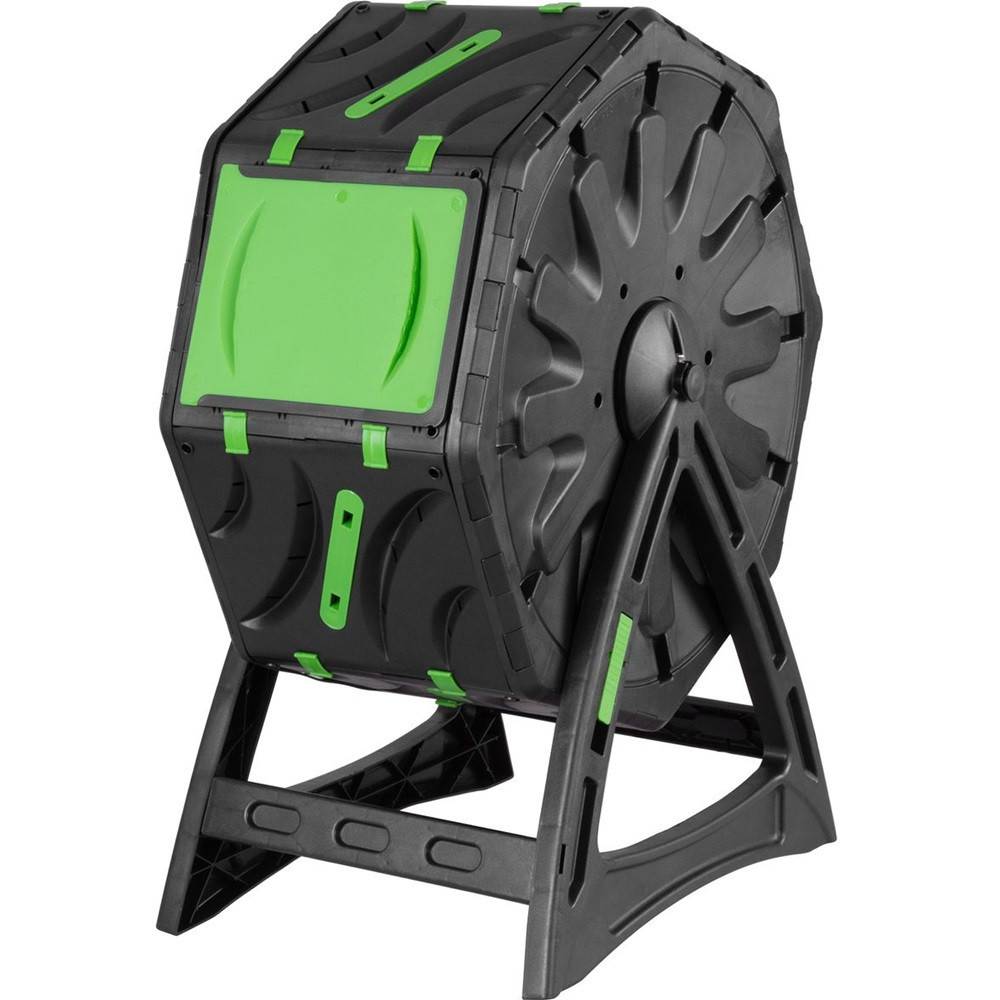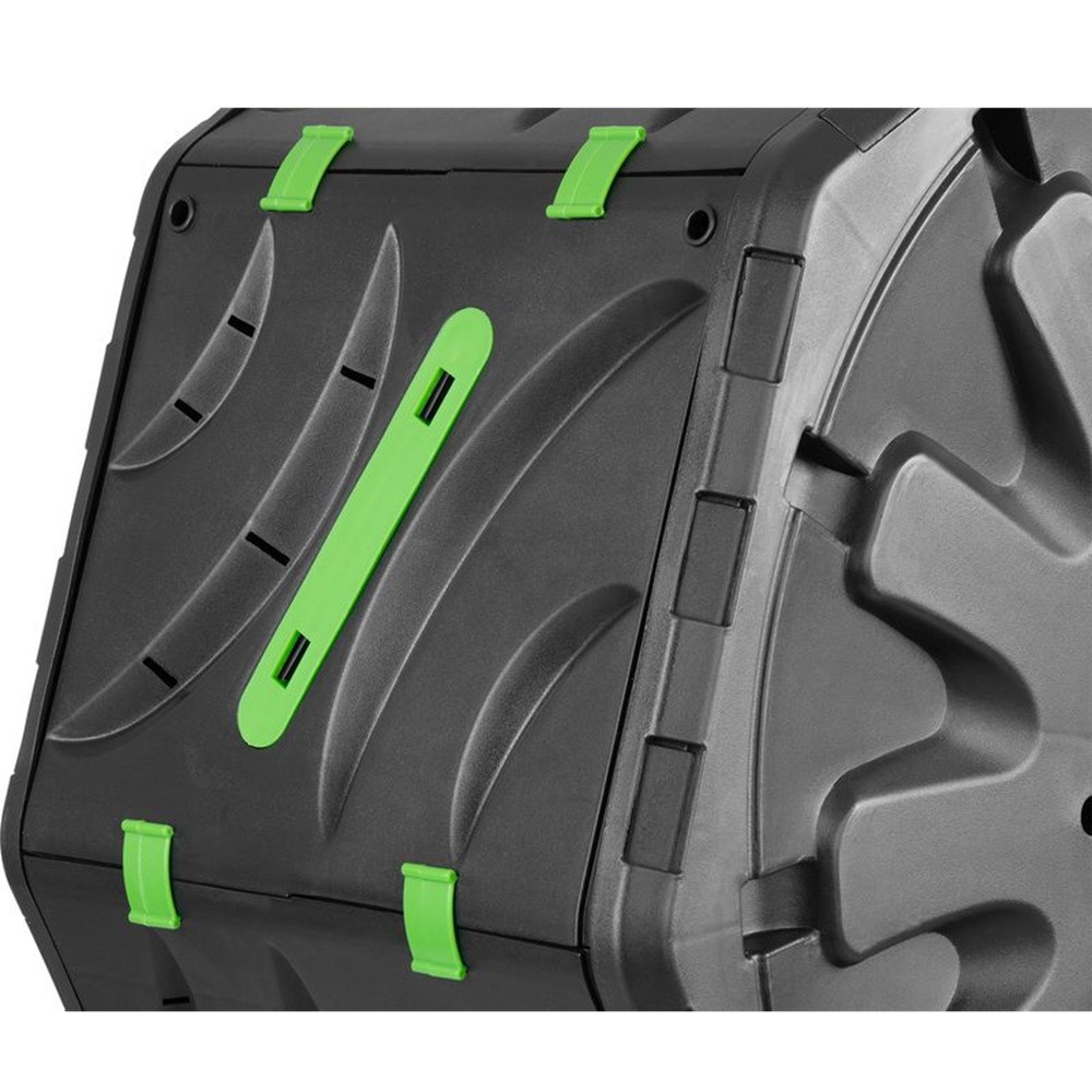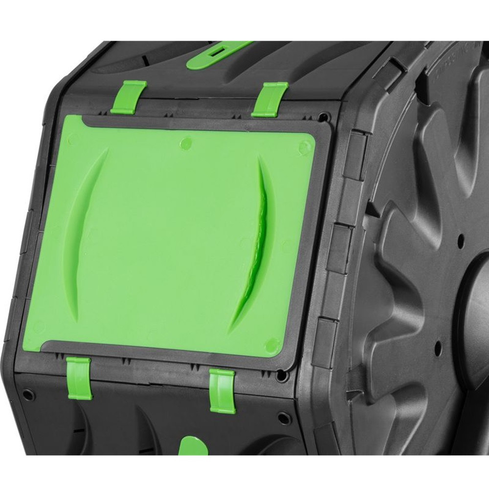 Az emelt, lábakra szerelt dob tehermentesíti a hátat, hiszen nem kell a talaj fölé hajolnod a keveréshez vagy az ürítéshez. A dob minden fordításkor átkavarja a beltartalmat, így a hasznos baktériumok gyorsabban dolgoznak, a kellemetlen szagok pedig minimálisra csökkennek. A műanyag falak sötét színe elnyeli a napfényt, ami melegen tartja a belső közeget, így egész évben lendületben tarthatod a komposztálást. A stabil konstrukció időjárásálló, ezért bátran kint hagyhatod a kertben hóban, esőben, tűző napon egyaránt.