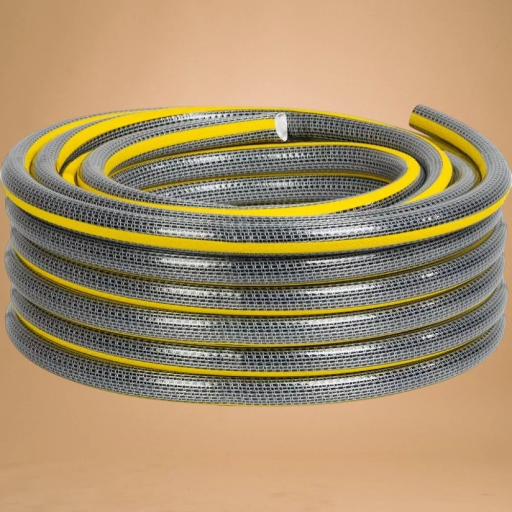 Ez a tömlő a tartósság és a kényelem tökéletes ötvözete: rugalmas PVC kialakítása könnyed kezelhetőséget ad, még alacsony hőmérsékleten sem válik rideggé, UV-álló külső felülete pedig ellenáll a napsugárzás okozta repedezésnek. A vastag falú, hálós erősítés nagy üzemi nyomást bír, így akár esőztetőkkel, akár pisztolyos szórófejekkel kompatibilis. A hossz rövid, kezelhető, ideális teraszhoz vagy mobil öntözéshez.