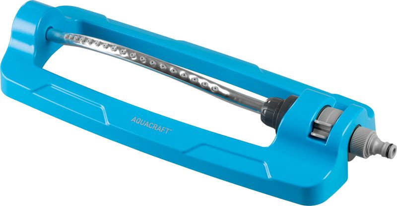 Élvezd a hatékony gyepöntözést az AQUACRAFT® 280050 Classic oszcilláló locsolófejjel! A masszív, kék műanyag keret stabilan fekszik a fűre, míg az ívelt, rozsdamentes lengőkar precízen porlasztja a vizet a teljes felületen. A 18 apró fúvóka egyenletes esőhöz hasonló permetet hoz létre, így elfelejtheted a tocsogó pocsolyákat és a kiégett foltokat. A szabványos gyorscsatlakozó révén pillanatok alatt tömlőre pattintható, a 0,53 kg-os tömeg pedig egyszerre könnyű és stabil.