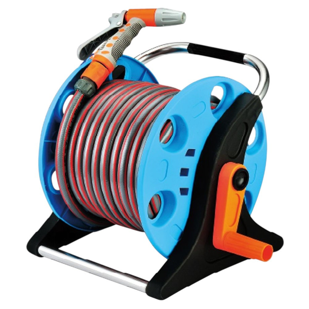 Kerti tömlődob, Strend Pro Garden ST.2015A, kék, tömlővel, 1/2″, 20 m, szórópisztollyal, csatlakozókkal