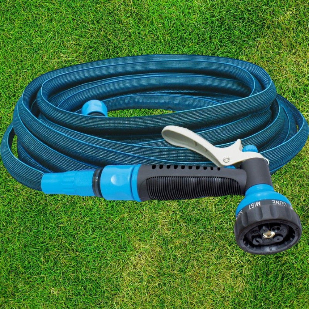 Fedezd fel a rugalmas öntözés élményét az Aquacraft 870030 nyújtható locsolótömlővel! A tömlő üresen 15 m, de víznyomás alatt akár 30 m-re is megnyúlik, majd a csap elzárása után azonnal visszahúzódik. Az 1/2” átmérő ideális a kerti csapok többségéhez, a kopásálló, UV-álló textilborítás megóvja a csövet a sérülésektől és a csavarodástól. Mindössze 1,85 kg, így könnyedén áthelyezheted, míg a 7 funkciós szórópisztoly precíz vízadagolást nyújt virágokhoz, sövényhez vagy teraszmosáshoz.