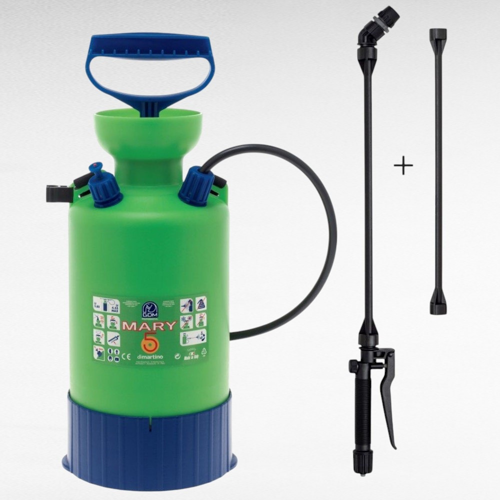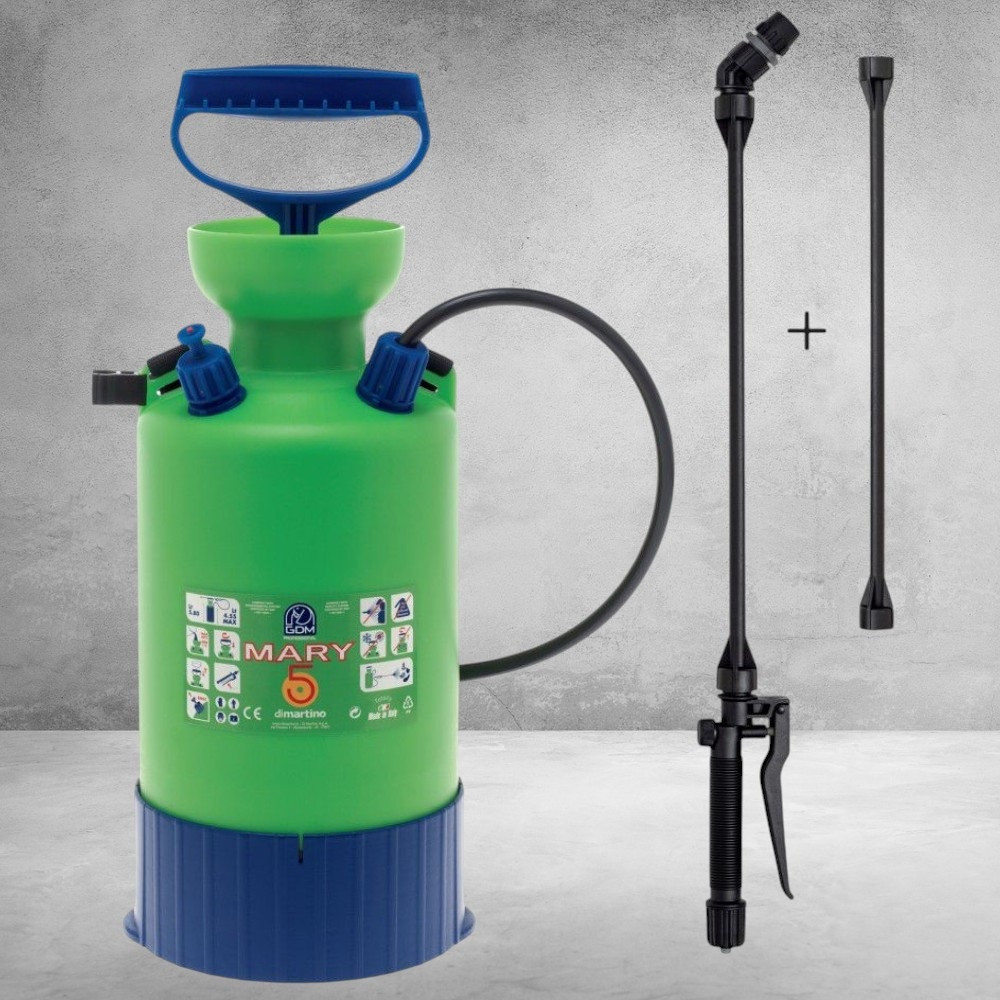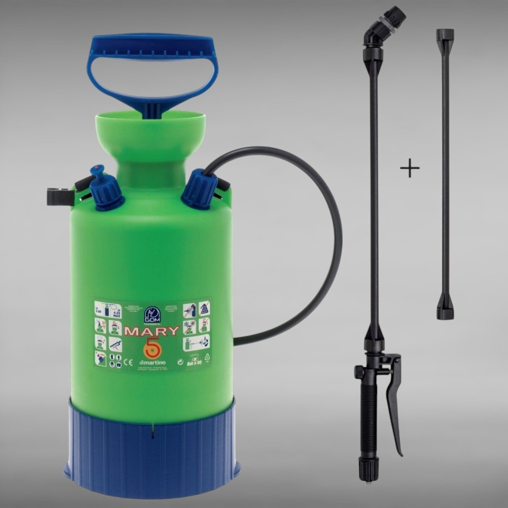 A Dimartino® GDM MARY 5 egy megbízható, praktikus és kényelmes vállra akasztható permetező, amelyet kifejezetten otthoni, kerti és üvegházi használatra terveztek. Könnyű, mégis tartós felépítésének köszönhetően ideális választás növényvédelemhez, gyomirtáshoz vagy fertőtlenítő oldatok kijuttatásához.