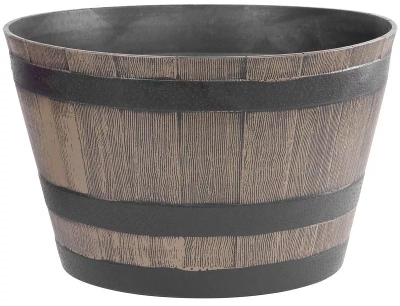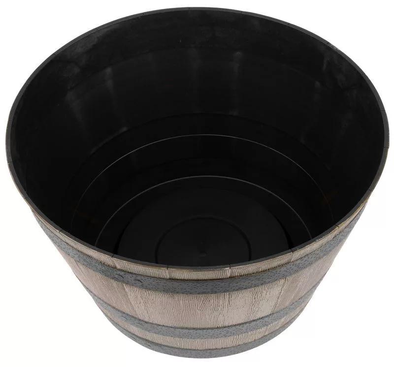 Az UV-álló anyag sokáig megőrzi színét és mintázatát, nem repedezik, nem fakul. A széles száj egyszerre biztosít elegendő helyet a gyökerek terjedésének és megkönnyíti az ültetést. A kifelé bővülő hordóforma megemeli a növény koronáját, így a virágok még látványosabban érvényesülnek. A dekoratív fekete pántdísz fokozza a hordó illúzióját, így a cserép önmagában is stílusos dísze kültéri és beltéri tereknek egyaránt.