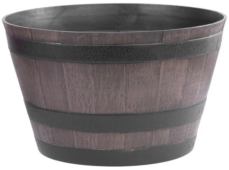 Nem kell többé nehéz agyagedényekkel bajlódnod: a pehelykönnyű műanyag hordó optikailag fából készült dézsát idéz, mégsem reped, nem szívja magába a nedvességet. UV-stabil szerkezete nem fakul a napsütésben, esőben sem mállik, fagyban sem reped. Bordázott pereme biztos fogást ad, az alján jelölt pontok megkönnyítik a vízelvezető nyílás kialakítását, így szobanövényt és kültéri díszfát is bátran ültethetsz bele.