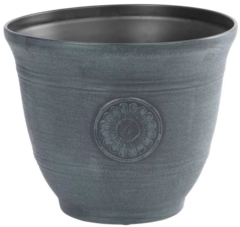 Az elegáns fémes csillogás prémium hangulatot teremt anélkül, hogy a valódi fém súlyával terhelné a kezed. A masszív perem biztos fogást ad emeléskor, a széles szájnyílás pedig megkönnyíti a beültetést és az átültetést. A napfényálló felület gondoskodik arról, hogy a mélyzöld árnyalat hosszú távon is élénk maradjon, a hideg–meleg ingadozásnak ellenálló anyag pedig beltéren és kültéren egyaránt időtálló társsá teszi.